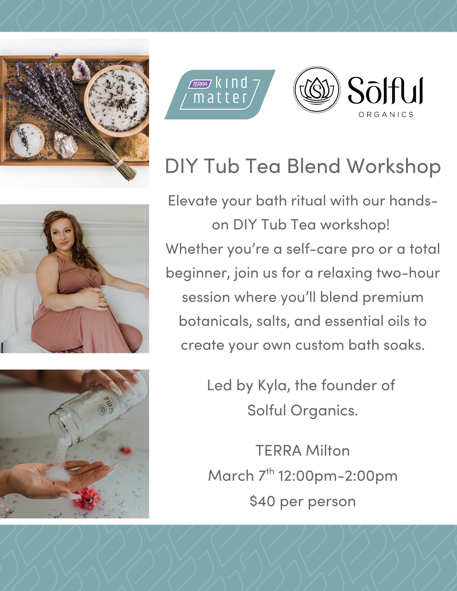 Elevate your bath ritual with our hands-on Make Your Own Tub Tea workshop! Whether you’re a self-care pro or a total beginner, join us for a relaxing two-hour session where you’ll blend premium botanicals, salts, and essential oils to create your own custom bath soaks.