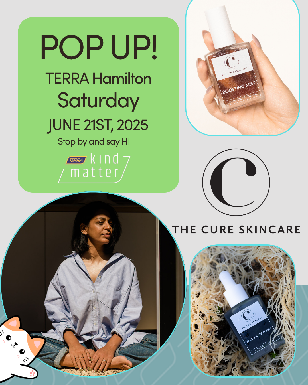 Stop by TERRA Hamilton and meet Nitasha, Founder of The Cure Skincare!