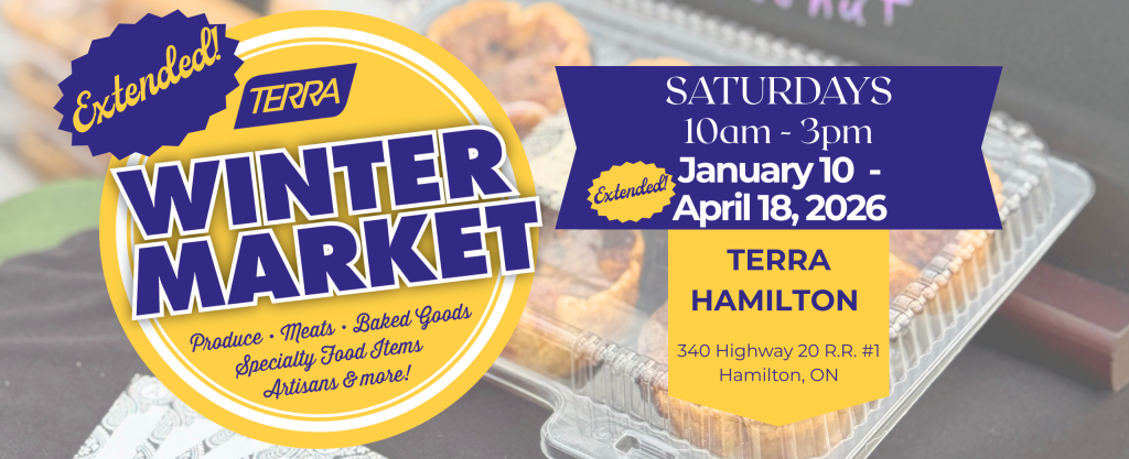 The TERRA Winter Market in Hamilton is your cozy, indoor Saturday destination for shopping local all winter long. Hosted at TERRA Hamilton (340 Hwy 20 RR1, Hamilton), this weekly market brings together 40+ local vendors from Hamilton and across Southern Ontario.