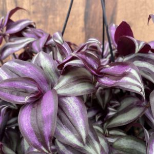 A popular tropical houseplant valued for the stripes of white, green, silver, and purple colors of their foliage. They have trailing vines that flow from their base and are very easy to care for. Water completely and allow the soil to dry partially before watering again. Select a location that delivers medium to bright light.
