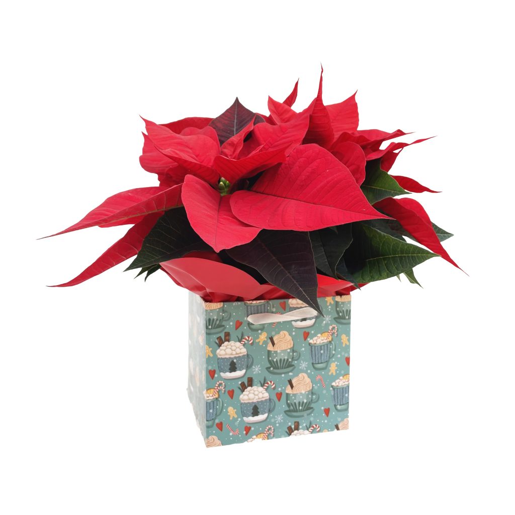 Bright, festive, and ready to gift! This 4″ poinsettia comes nestled in an assortment of charming holiday gift boxes, each featuring its own seasonal design. Vibrant red bracts and lush green foliage bring classic Christmas cheer, while the decorative box adds a stylish, ready-to-display touch. Box designs vary based on availability, ensuring every piece is uniquely joyful and perfect for gifting, home décor, or adding a pop of holiday spirit to any space.