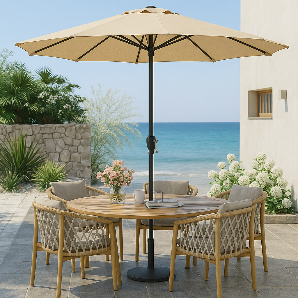 This 9ft Octagon Umbrella comes with a push button manual tilt feature that allows you to angle your umbrella to maximize your protection from the sun. Made with Polyester Fabric
