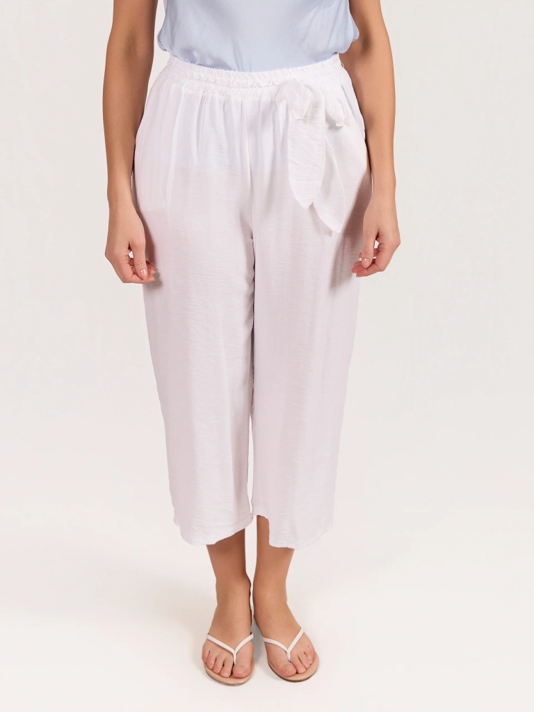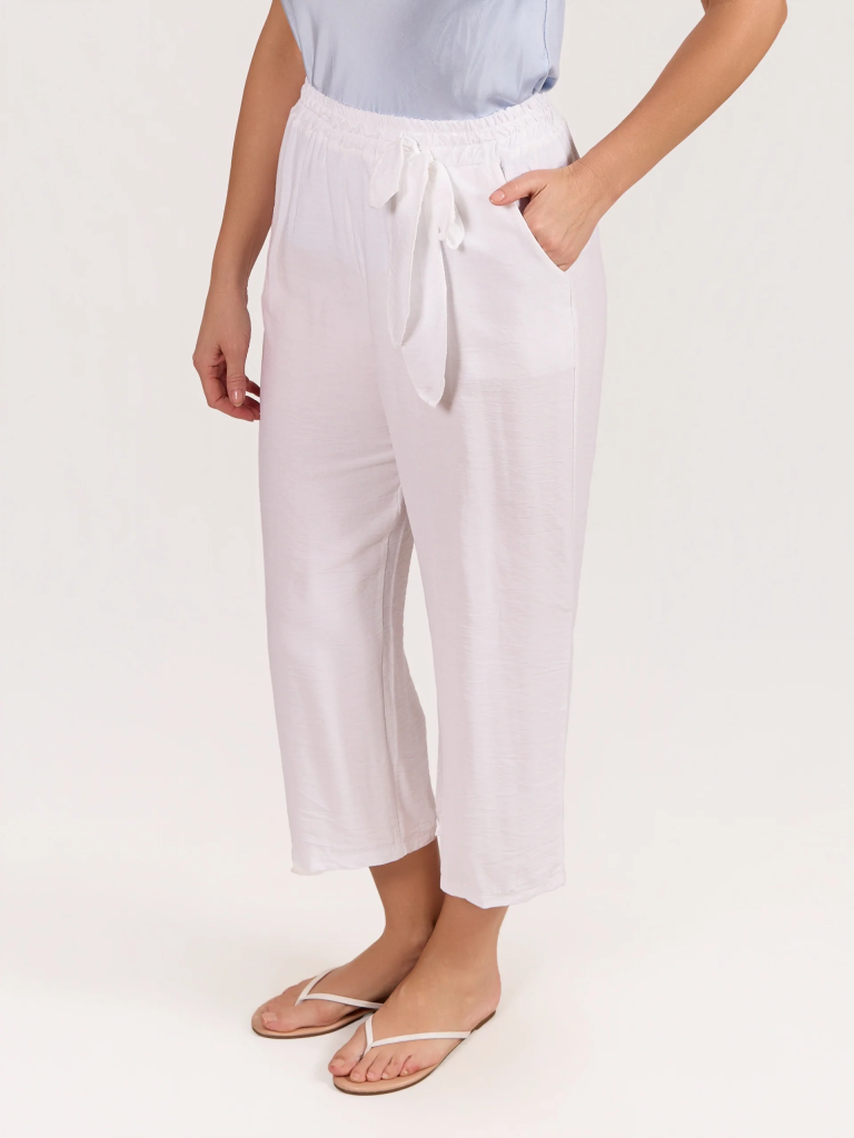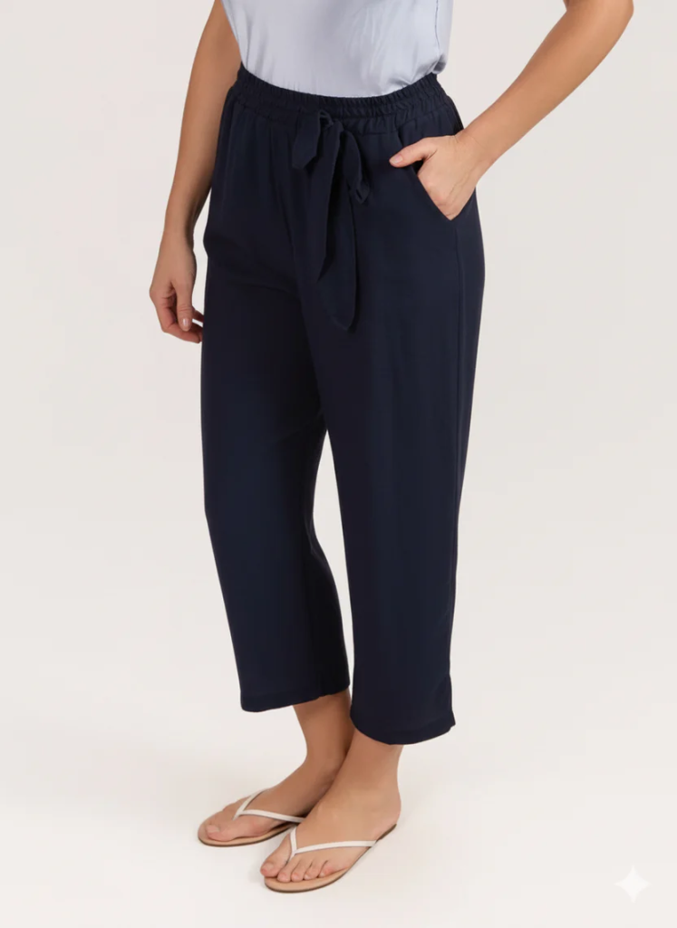 This pull-on pant features a comfortable elastic waistband and a refined tie-front trim detail for a polished yet relaxed look. Designed for effortless wear, it offers a flattering silhouette that transitions easily from casual daytime outfits to more elevated styling. Pair it with blouses, lightweight knits, or tailored tops for versatile everyday elegance.