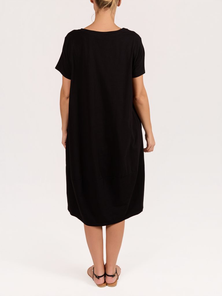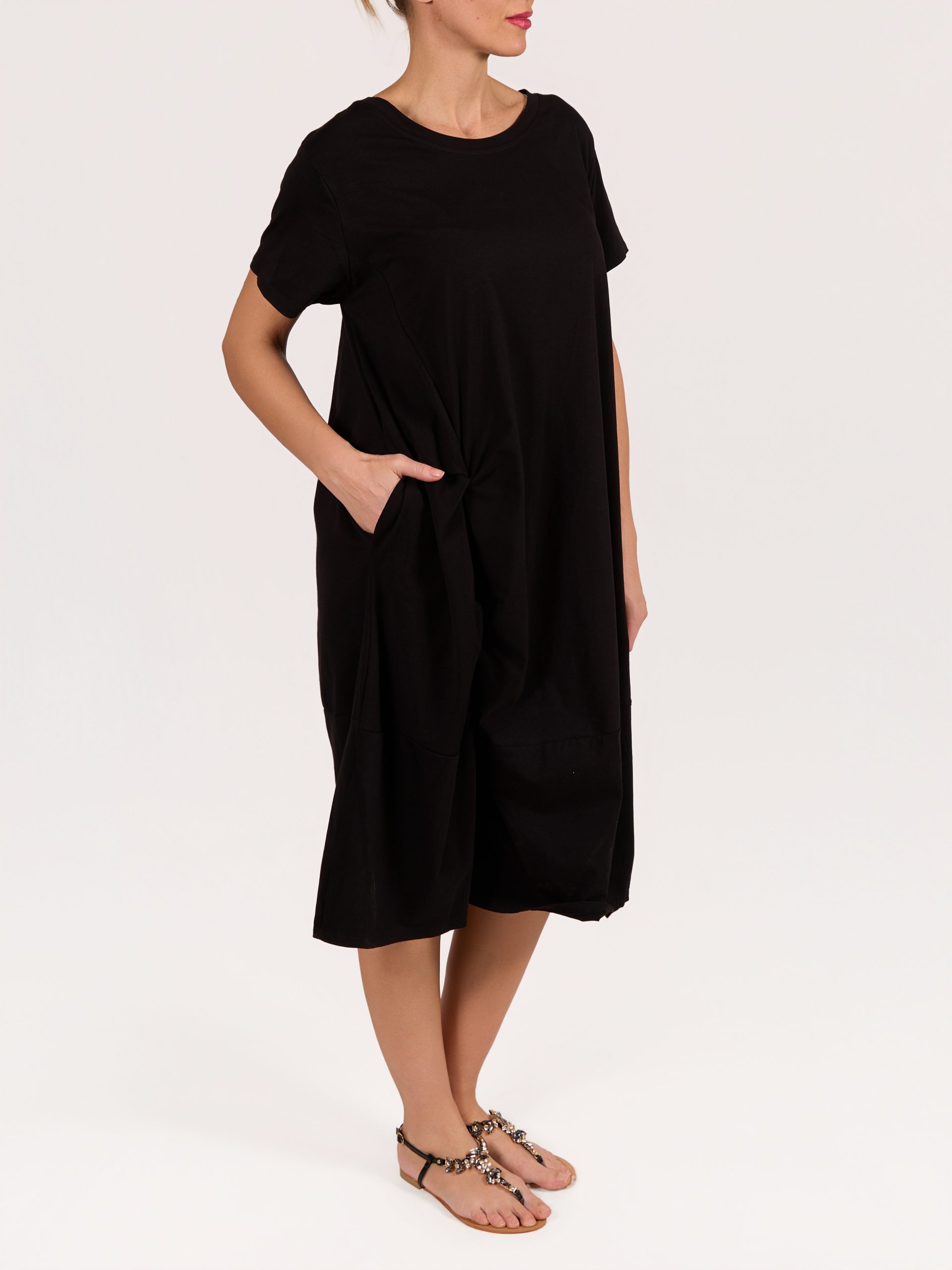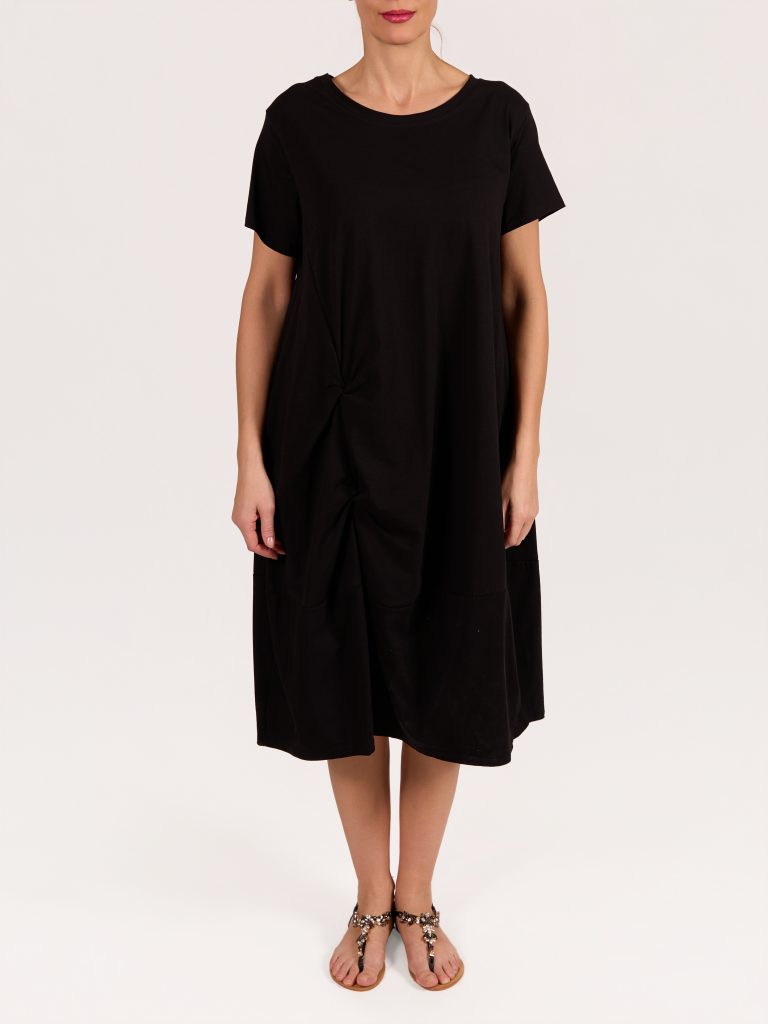 Sleek and sophisticated, this black short-sleeve maxi dress features a flattering twist side detail that enhances the silhouette with subtle definition. The streamlined design offers effortless elegance, while the soft, flowing fabric ensures all-day comfort. Perfect for evening occasions, special events, or elevated everyday wear, this versatile maxi dress pairs beautifully with statement accessories and heels for a refined, timeless look.