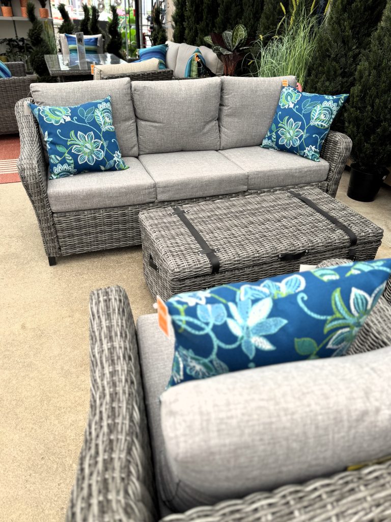 Cushion Fabric: Polyester with zippered cushions in Light Grey with 3” Polyurethane foam with 1.5” polyester batting