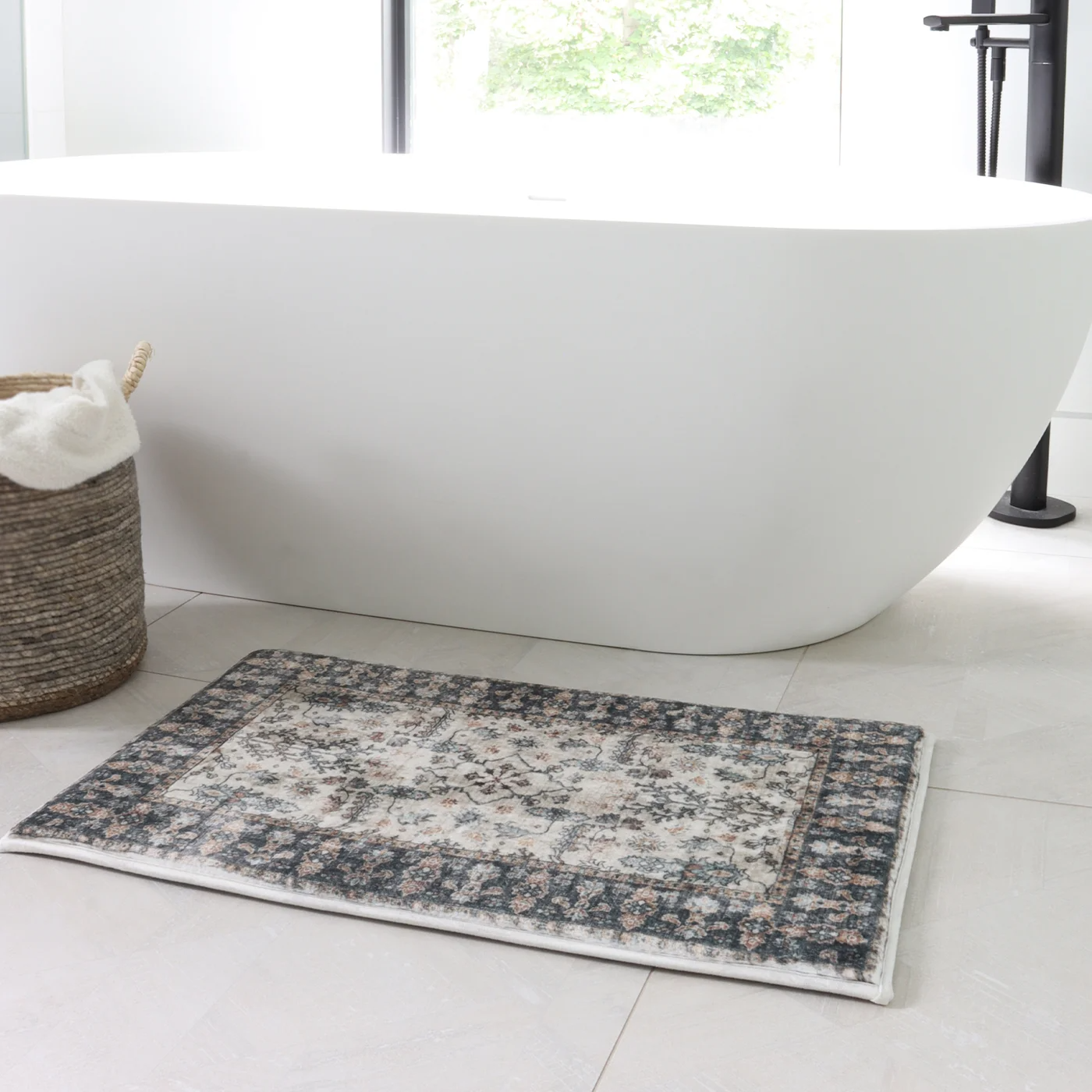 The Memory Foam Cilantro Bath Mat features a simple, modern design in neutral tones. Its plush, cushioned feel provides comfort and support underfoot, while adding a contemporary touch with a subtle rustic feel. Machine washable for easy care.