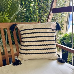| Botanical Print Square Pillow. This 18″ x 18″ square pillow features a classic botanical print in deep green on a neutral background, giving it a timeless and nature-inspired look.