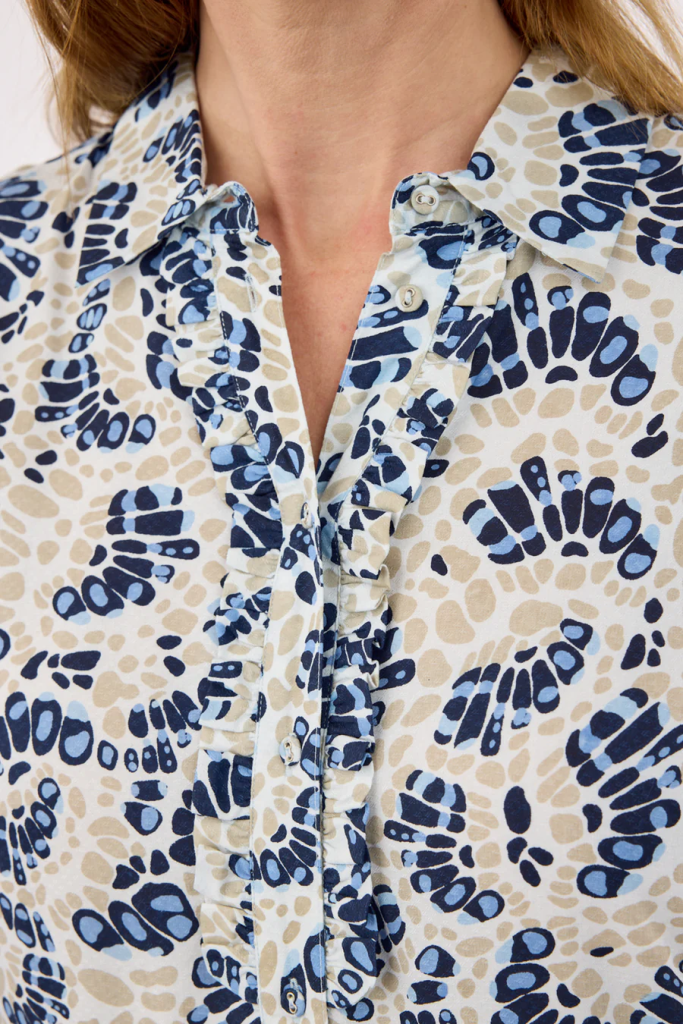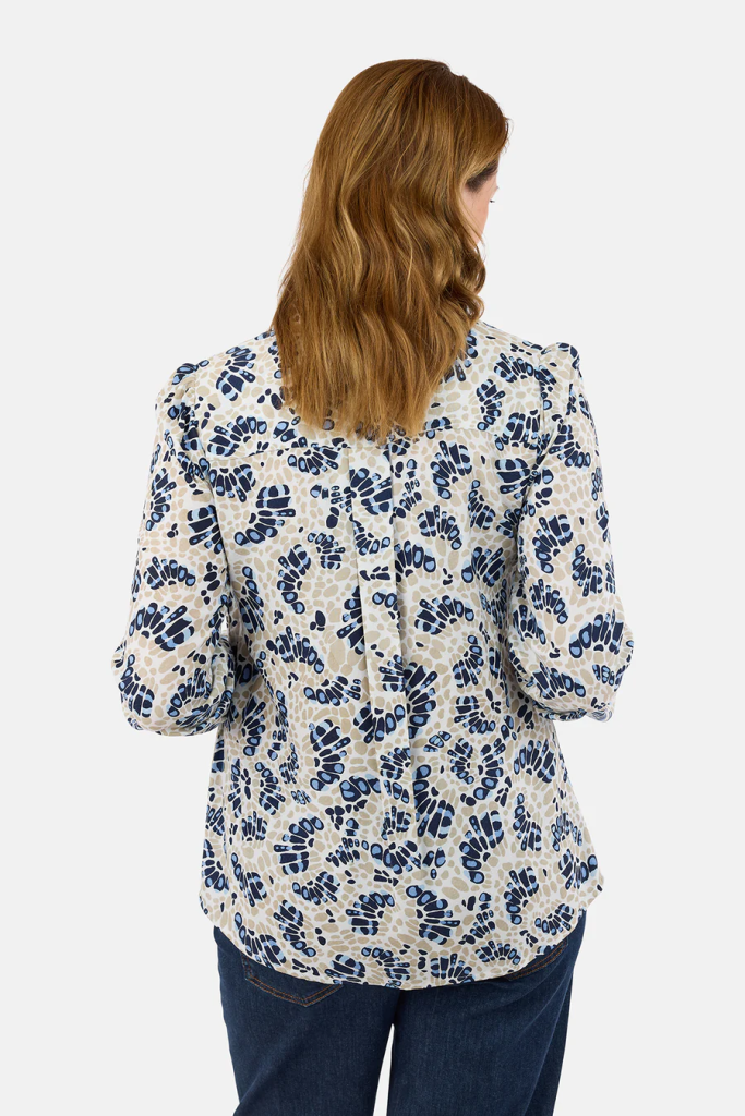 Feminine and lightweight shirt from Brandtex, designed in a beautiful beige and blue pattern that gives a vibrant and modern look. The lightweight, woven quality falls softly and makes the shirt comfortable to wear all day long – ideal for both work and leisure.