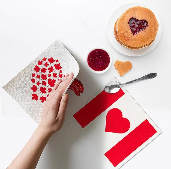 | Show Your Love Of Canada With This Fun Set Of Canada Flag & Heart Amazing Swedish Dishcloths. A 100% Biodegradable Cotton/Cellulose Mix, These Reusable Swedish-Made Dishcloths Are As Durable As They Are Eco-Friendly. Each One Replaces Up To 15 Rolls Of Paper Towel – Great For Use At Home, The Office Or At The Cottage.