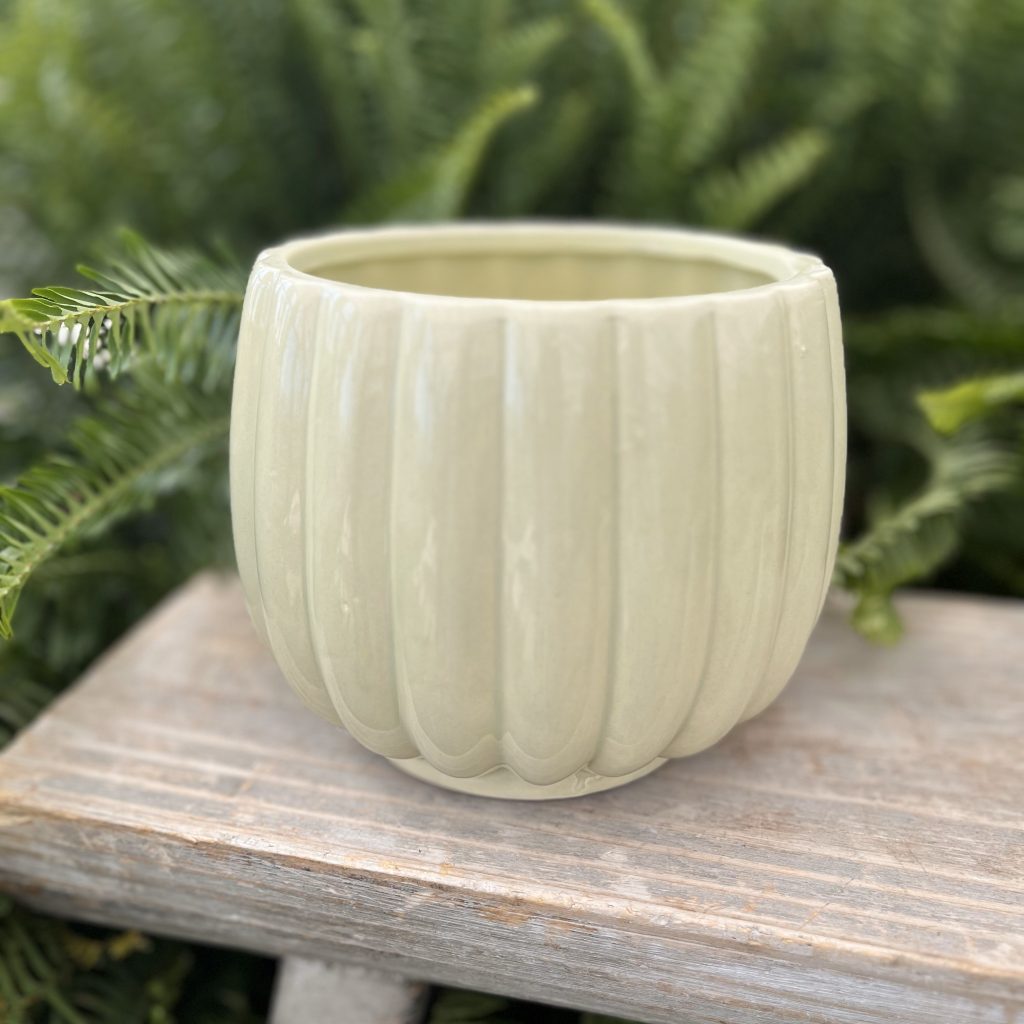 This 5.9″ Carna Pot features a soft, pastel glaze and a rounded, ribbed design that adds a subtle elegance to any space. Its smooth ceramic finish and pumpkin-like ridges give it a modern yet organic appeal, making it perfect for both indoor and outdoor use. Ideal for small plants or succulents, this pot complements a variety of decor styles with its clean, calming aesthetic. Whether perched on a windowsill or nestled among greenery, it brings a touch of charm to any setting.