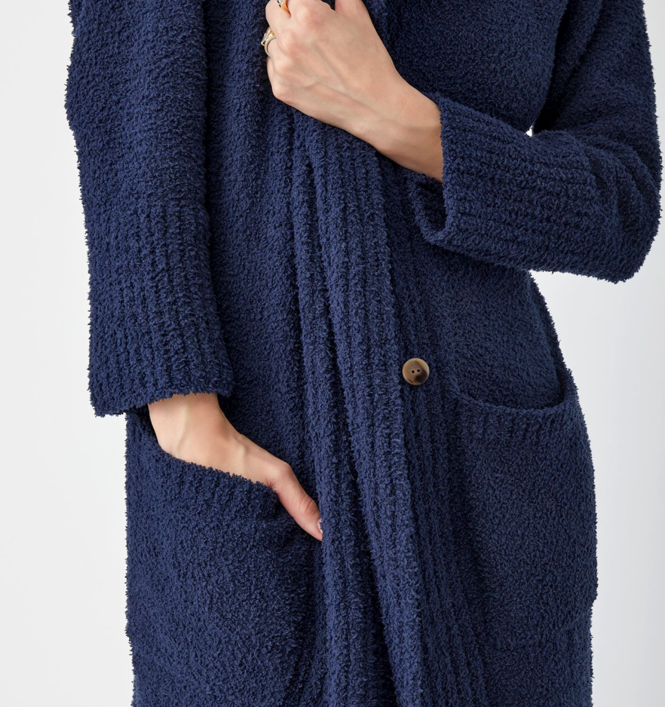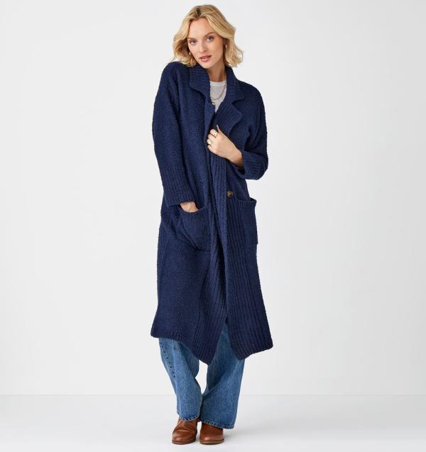 Wrap yourself in warmth and style with the Cozy Sweater Coat in Mauve. Featuring a below-the-knee length, ribbed collar and cuff detailing, and two front pockets, this coat is perfect for layering over any outfit for a polished, cozy look.