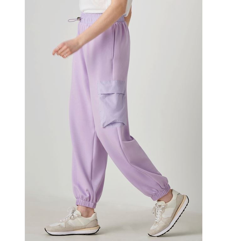 For the woman on-the-go, this elevated Relaxed Cargo Jogger is made from an irresistibly soft and buttery smooth breathable rayon blend. This full length pant in a fine gauge knit features a comfort waistband, large side flap pockets, and a roomy relaxed fit for exceptional ease of movement. All accent pockets and welts are in a woven fabric