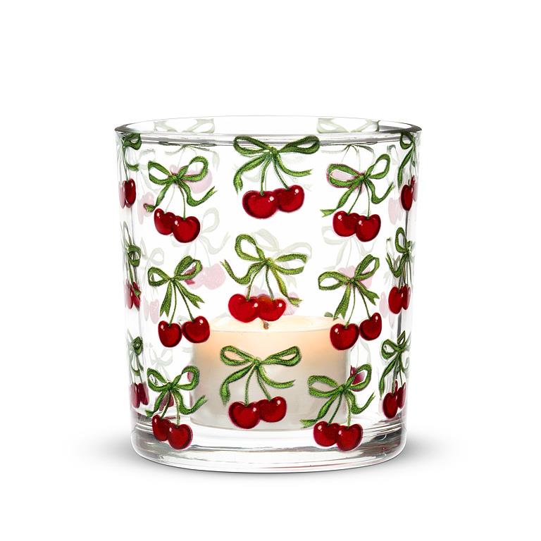 Light up your space with a little fruit-forward flair. This glass votive holder features a vibrant cherry design that pops when the candle glows – a juicy twist on everyday ambiance.