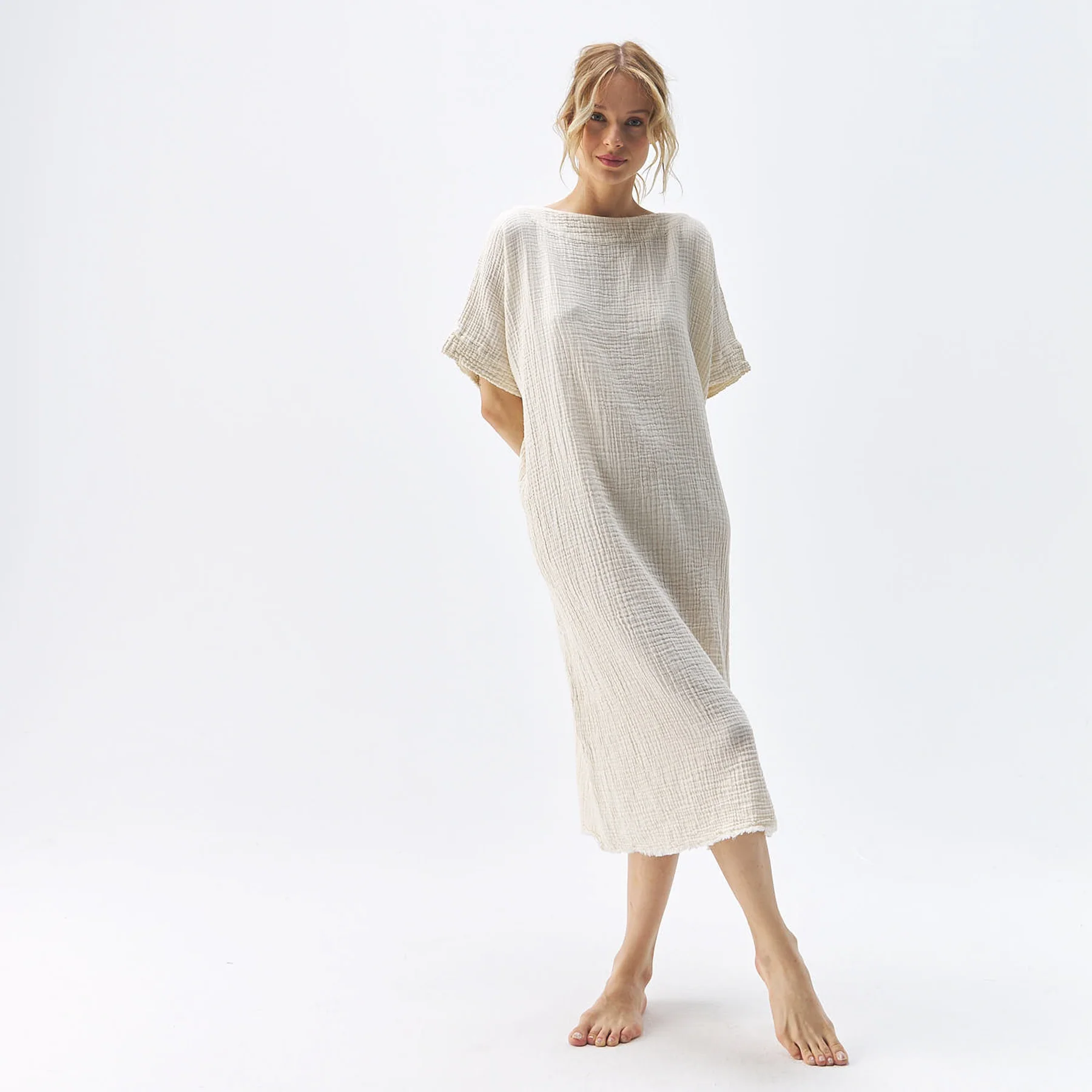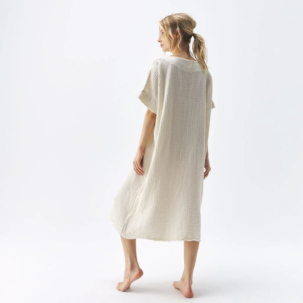 With a mid-calf length and one size fits most, this dress is going to be your capsule wardrobe go-to for day to night. The special weaving technique using pure Turkish cotton yields a crinkle appearance and enhanced softness.
