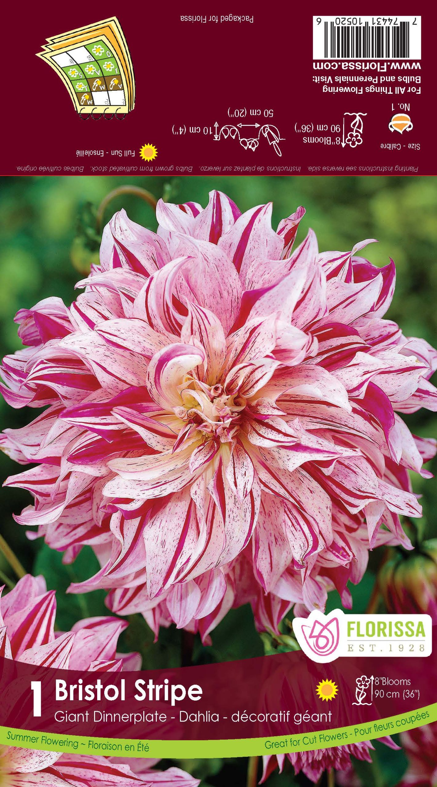 Dahlia Dinnerplate – Bristol Stripe – 1blb/pkg