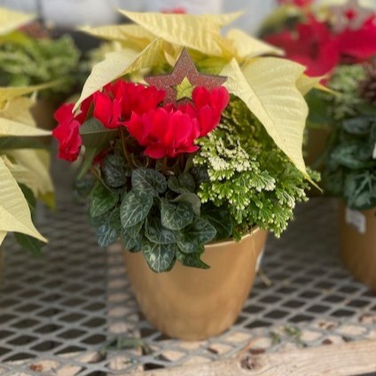 This elegant holiday trio features a festive mix of three guaranteed seasonal plants, showcasing a blend of fresh greenery and vibrant blooms. Plant varieties and colours may vary based on availability and freshness, ensuring each arrangement is uniquely charming. Presented in a sleek ceramic pot, it’s the perfect way to bring cheerful, seasonal beauty to any home or office.