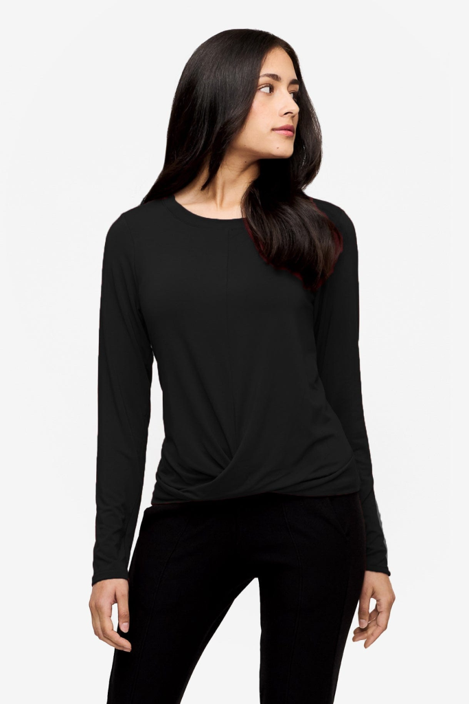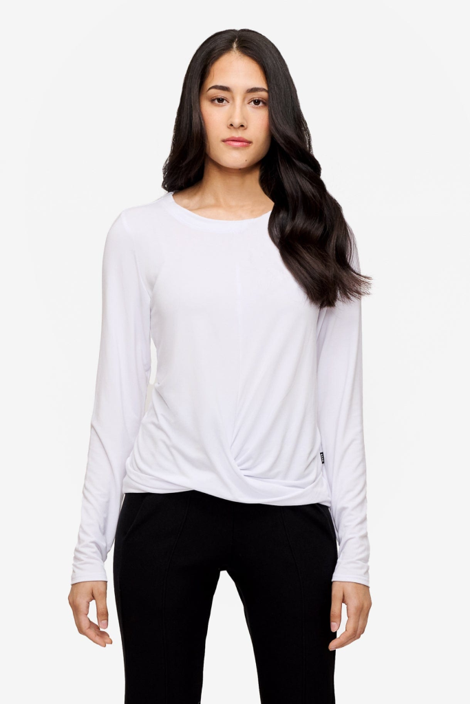The Leilani Longsleeve features a flattering draped front that adds a subtle twist to the classic longsleeve design. The relaxed fit and graceful silhouette make it an easy-to-wear staple that pairs beautifully with everything from your favourite leggings to tailored pants.