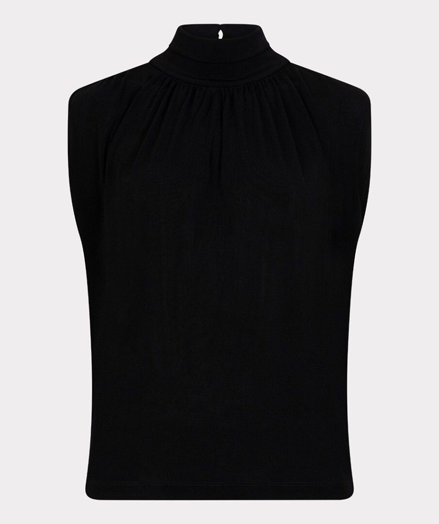 Chic black top with pleated neckline.