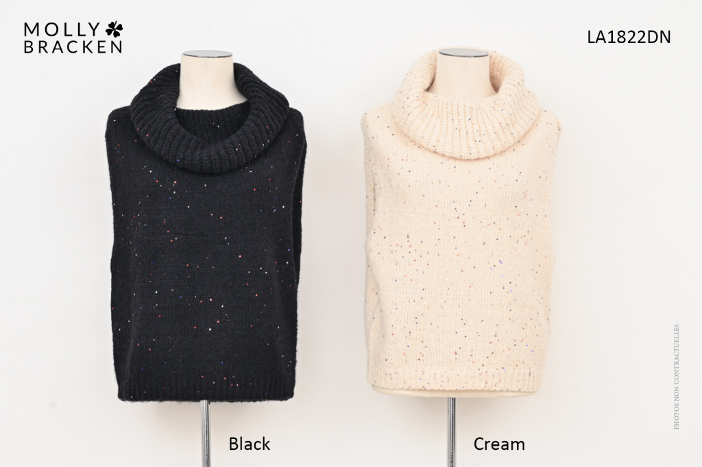 Sleeveless knit sweater with a cozy oversized cowl neck for a warm, relaxed feel. Finished with subtle multicolour fleck detailing for a soft, textured look.