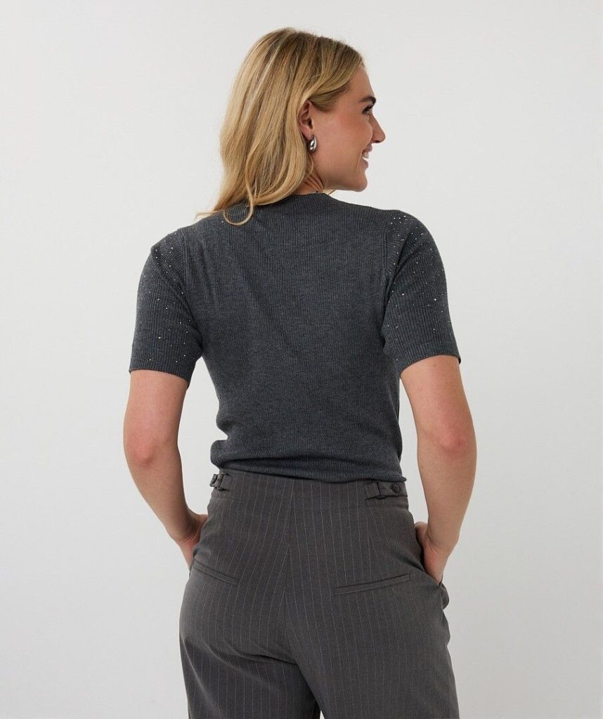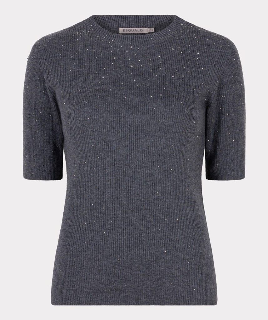Gorgeous fine-knit top with tiny sparkly studs and half sleeves. Model is 1.73m and wears size S.