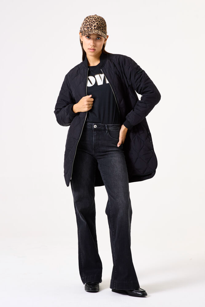 Lightly padded bomber jacket with stitched diamond pattern. This jacket is made from water-repellent material and features a round neck, long sleeves, and a zip closure, falling above the knee for a trendy look. The relaxed fit makes it easy to wear this jacket over various outfits. The outer layer of this jacket is made of 100% polyamide.