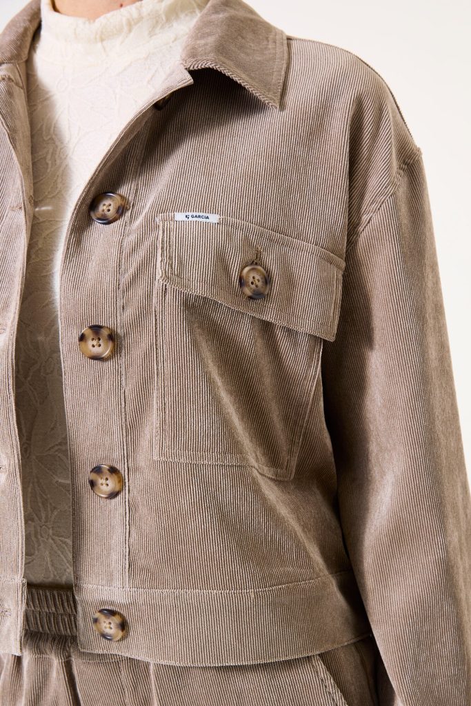 Stylish corduroy jacket for a trendy look. This jacket features a collar, long sleeves, and a button closure, with a relaxed fit for optimal comfort. This item is made of 90% polyester, 8% polyamide, and 2% elastane.