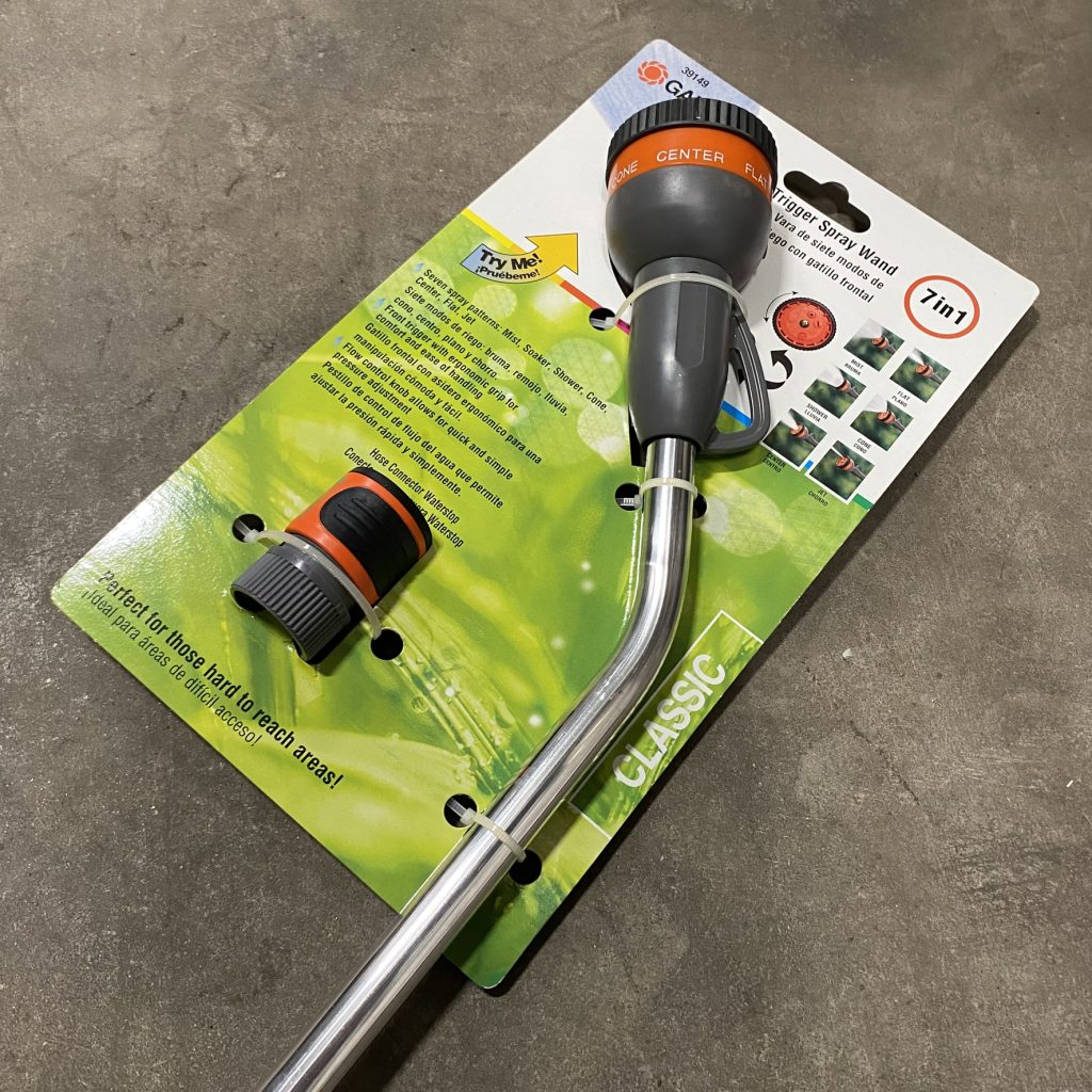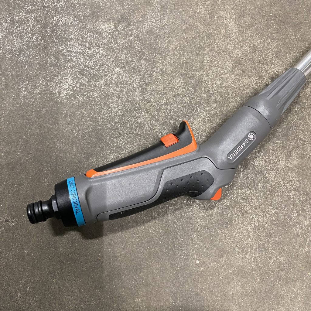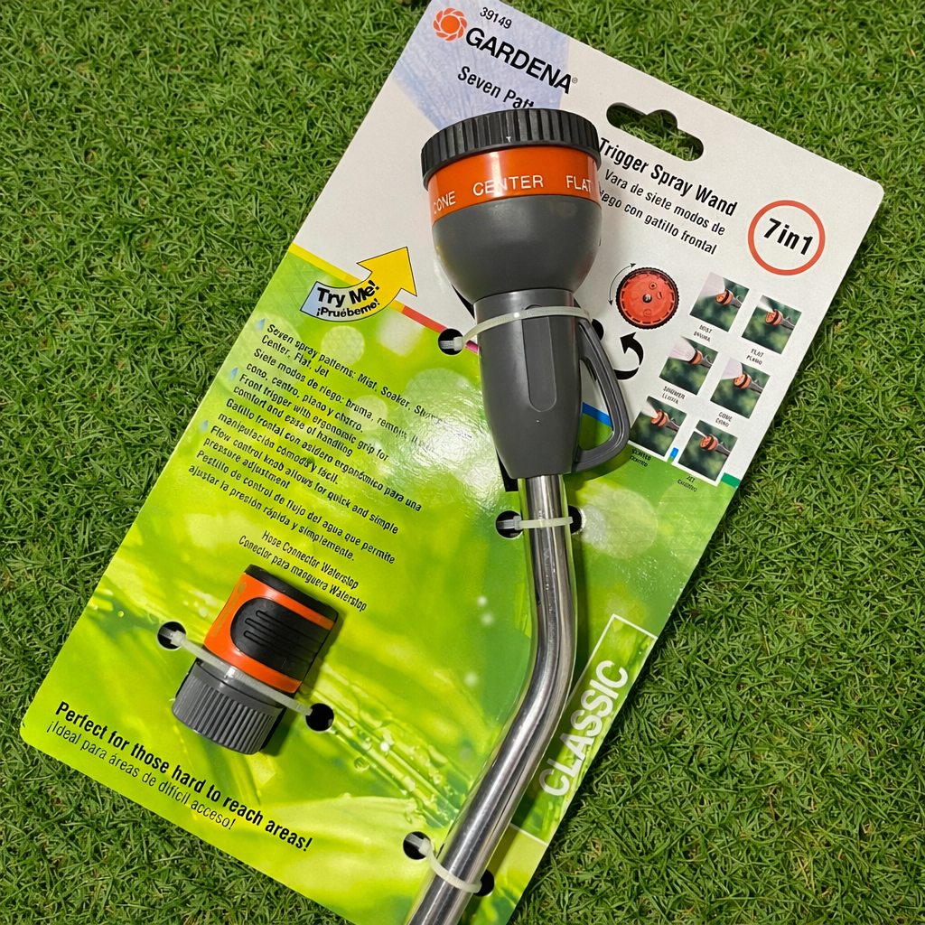 Gardena Classic 7 pattern water wand, thumb flow control, soft non-slip grip, rubber shock ring to protect spray head.