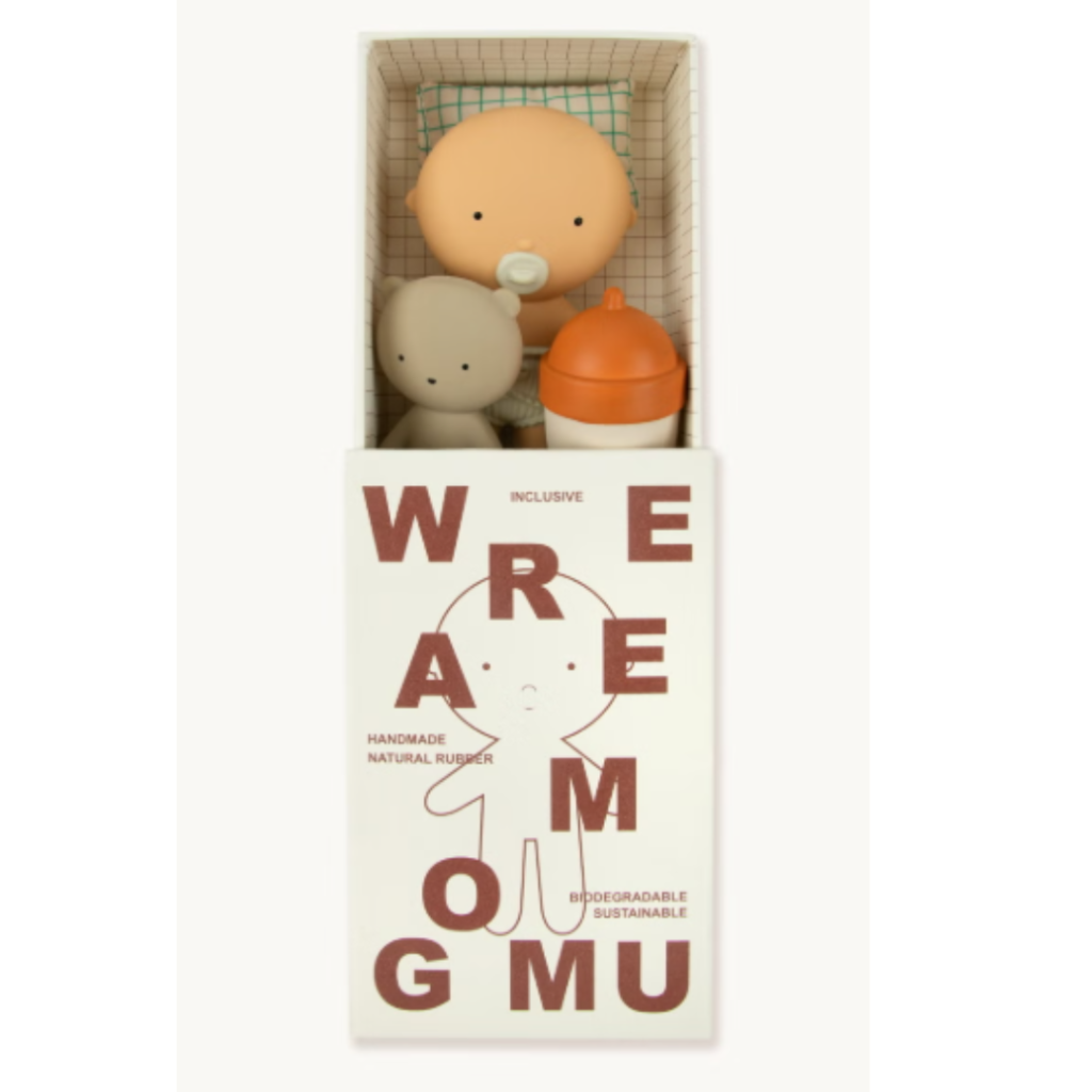Gommu family is getting bigger or maybe should we say smaller? Find Baby Gommu in POCKET size! Baby Gommu Vanilla comes with its best friend bear, a bottle of milk and a cushioned pillow for nap time. All these toys in one carboard bed for long hours of play!