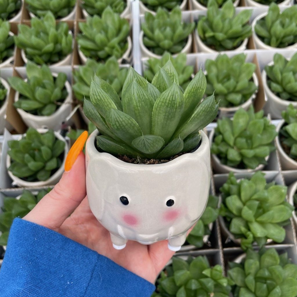Adorable and compact, this 2.5″ Haworthia cooperi is nestled in a charming animal-shaped ceramic pot. Known for its plump, translucent leaves that catch the light like tiny green jewels, this easy-care succulent adds a playful touch to any space. Perfect for desks, windowsills, or gifting, it brings a hint of whimsy and natural beauty wherever it goes.