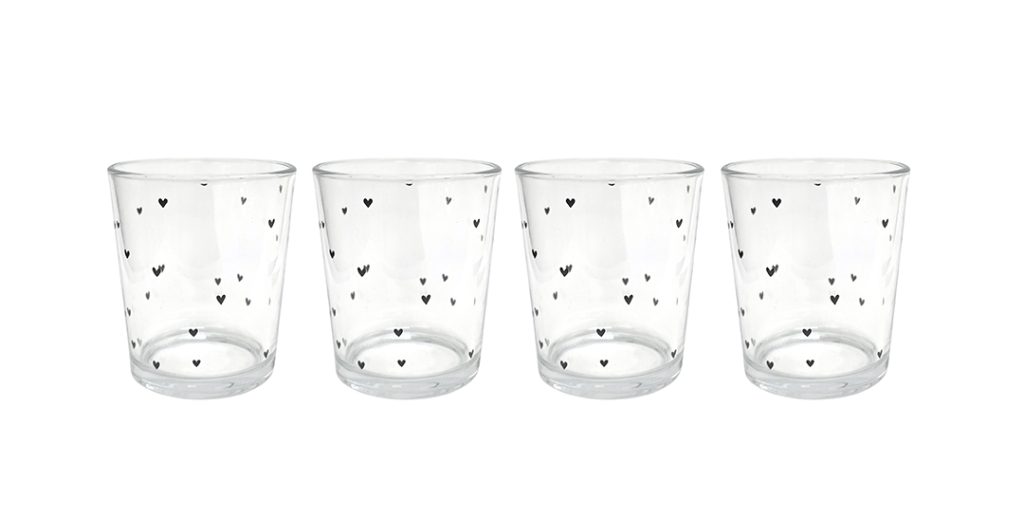 Heart With Love Glass Short Set Of 4 Black
