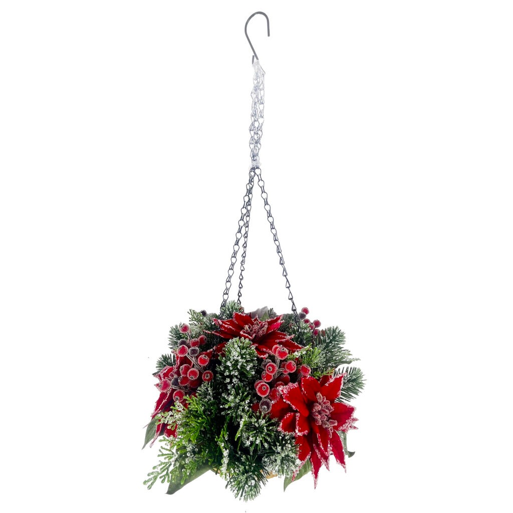 Holiday Decor – Hanging Basket Iced Poinsettia 32″ x 15″ Red/Natural