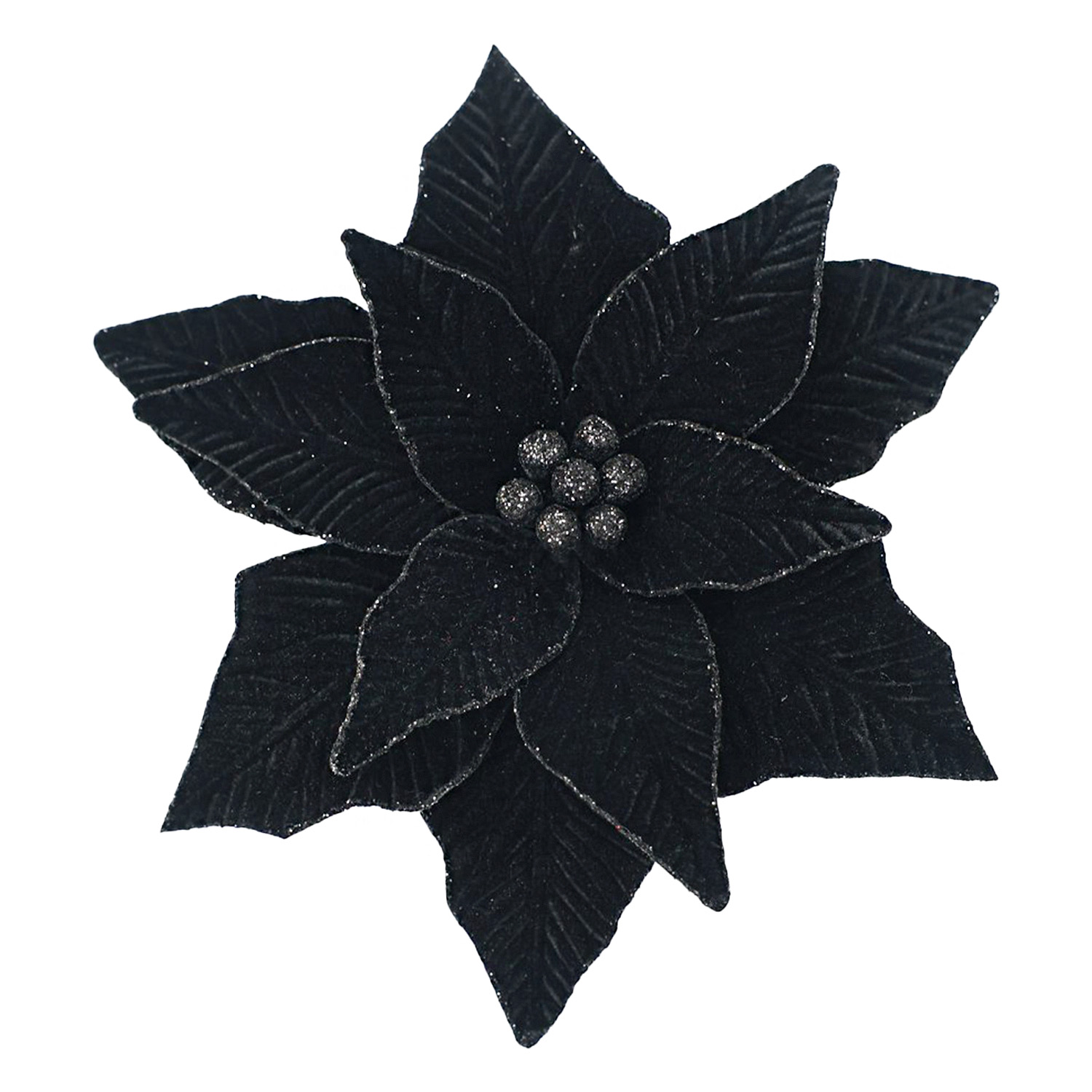Holiday Decor – Poinsettia Head Black 11.5″ Felt with Clip