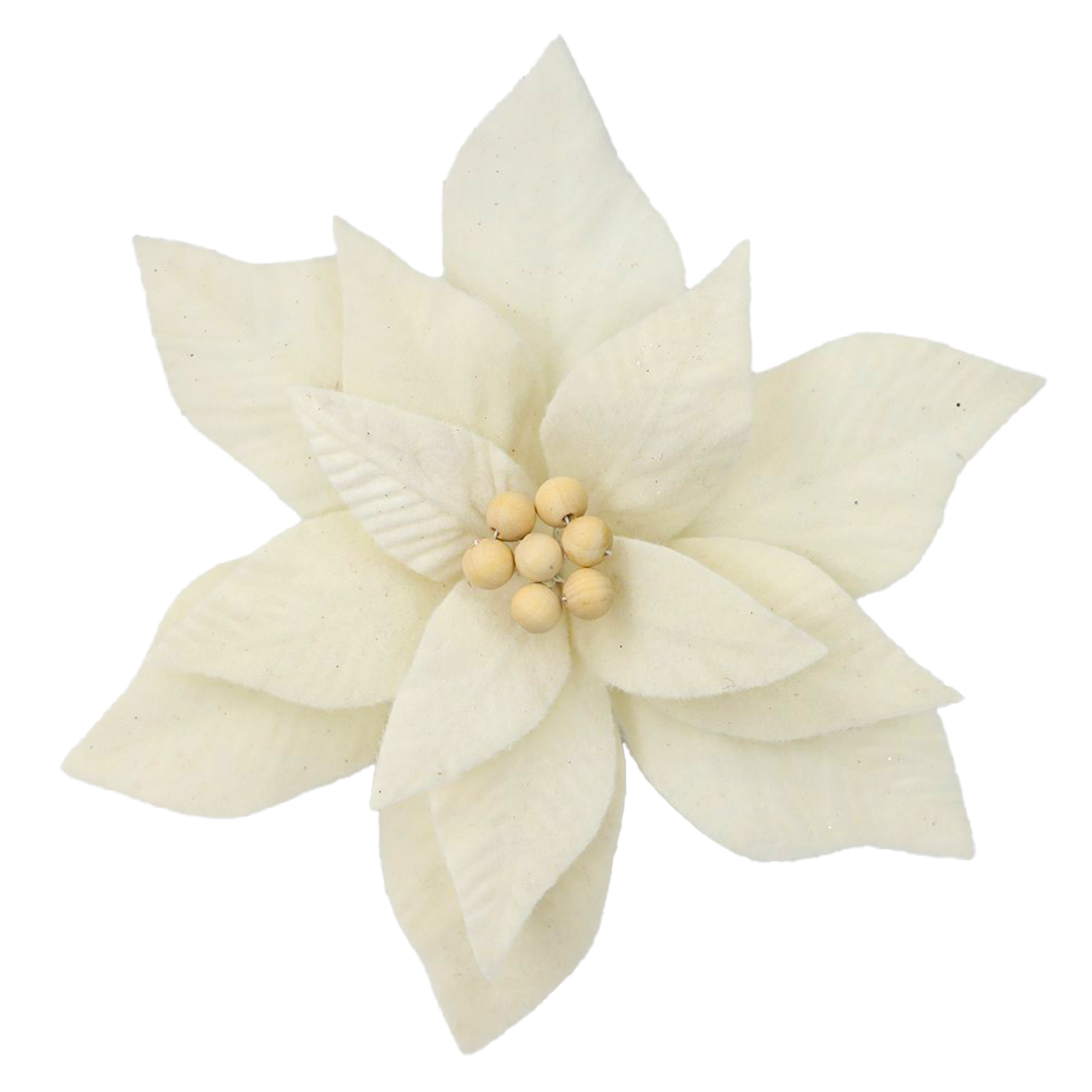 Holiday Decor – Poinsettia Head Ivory 11″ Felt with Clip