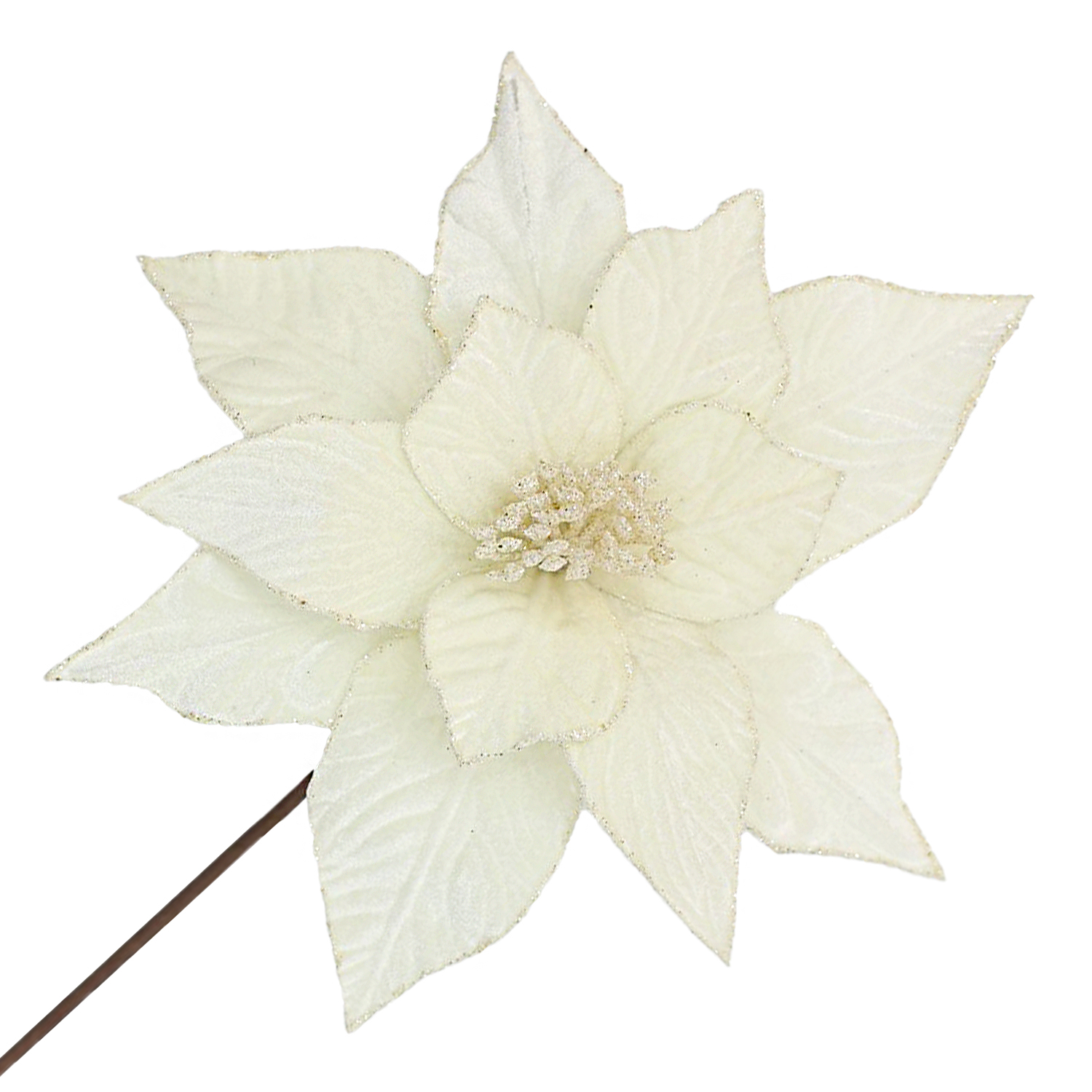 Holiday Decor – Poinsettia Stem Ivory 12″ Head Velvet with 20″ Stem