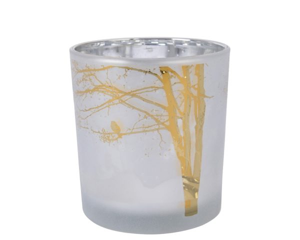 Holiday Decor – Tealightholder Glass with Bird Winter White