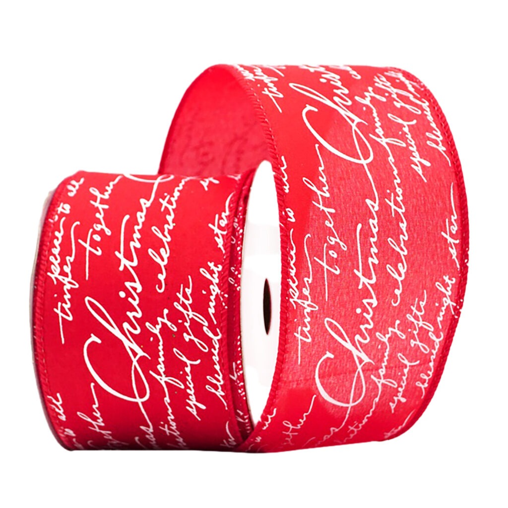 Holiday Decor – Wired Ribbon 2.5″”X10 Yds. Deep Red with White Christmas Writtings