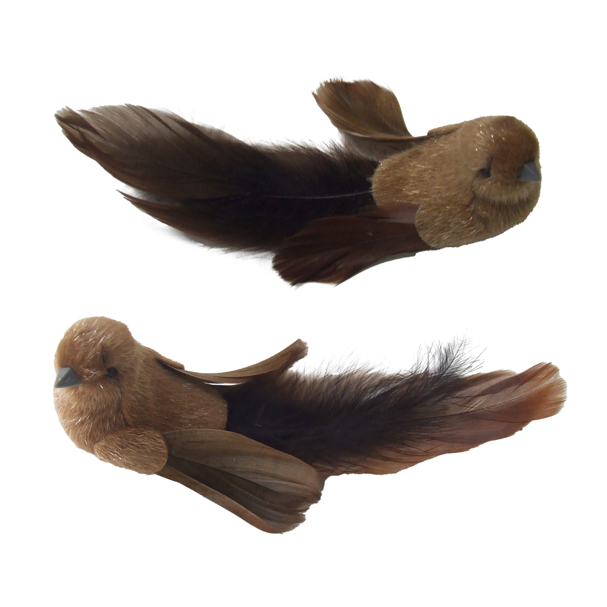 Holiday Ornament – Bird Brown Feather/Fabric 7″ with Clip