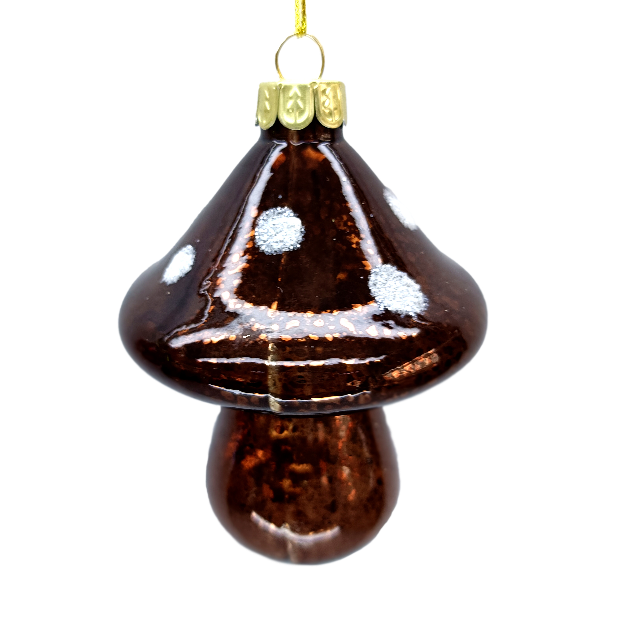 Holiday Ornament – Glass Mushroom Coffee 3″ Polka Dot Glitter