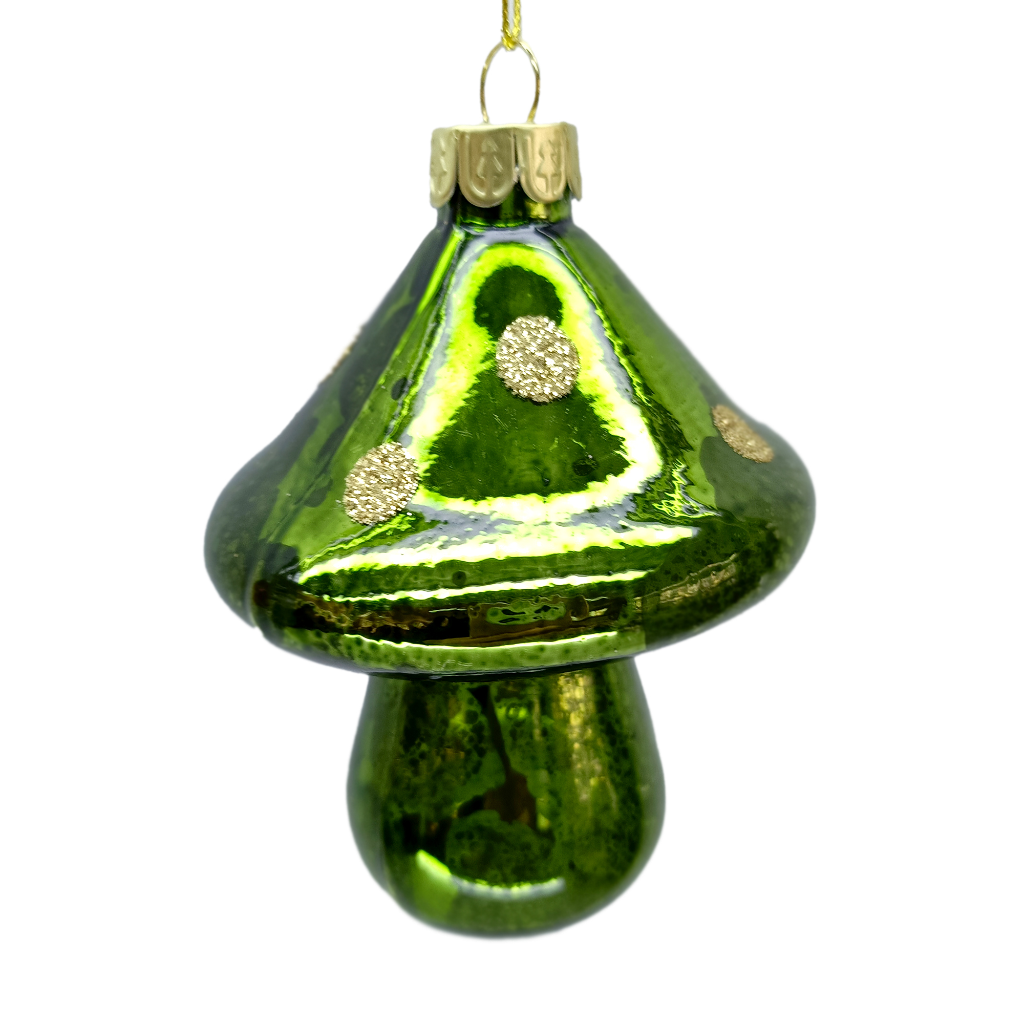 Holiday Ornament – Glass Mushroom Green 3″ Polka Dot Glitter