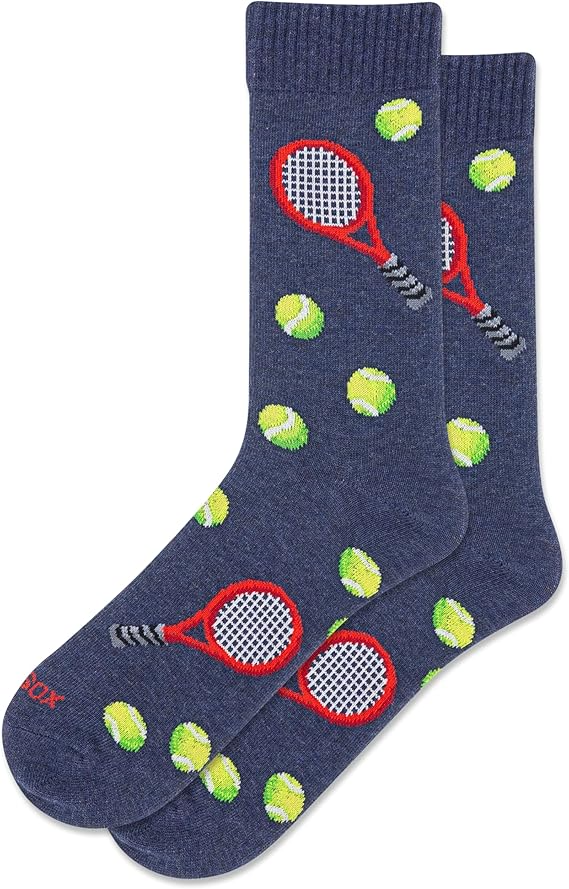 Hit the court in style with our Tennis Hybrid Crew Socks. Whether you’re serving aces or chilling after the match, these denim heather socks—covered in repeating rackets and tennis balls—bring sporty flair and all-day comfort. A secure hybrid fit with ribbed ankle keeps you ready for every rally, on or off the court. Grab a pair and take your game (and your look) to the next level!