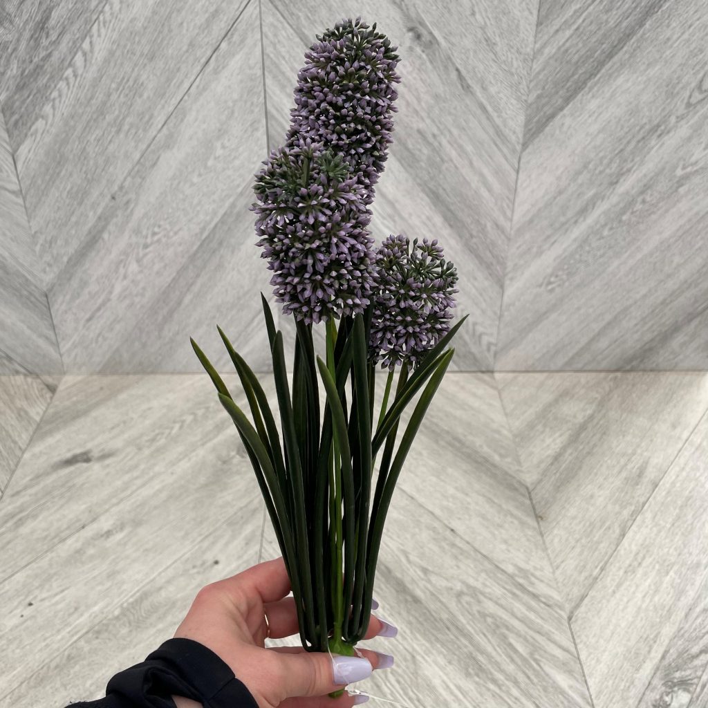 “Bring lasting beauty to any space with our UV-Resistant Artificial Hyacinth Stem, expertly crafted from high-quality plastic for a realistic and vibrant look. Each stem measures approximately 10 inches in length and features three full, lifelike blooms, available in your choice of soft pink or rich purple.