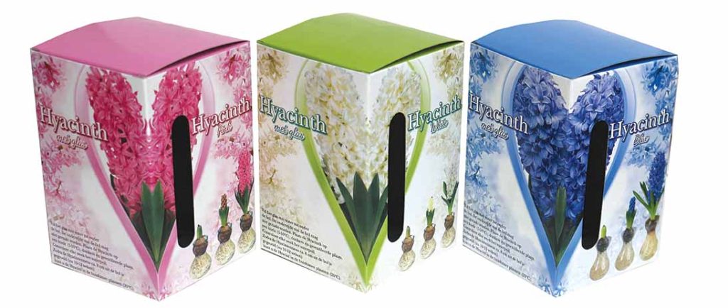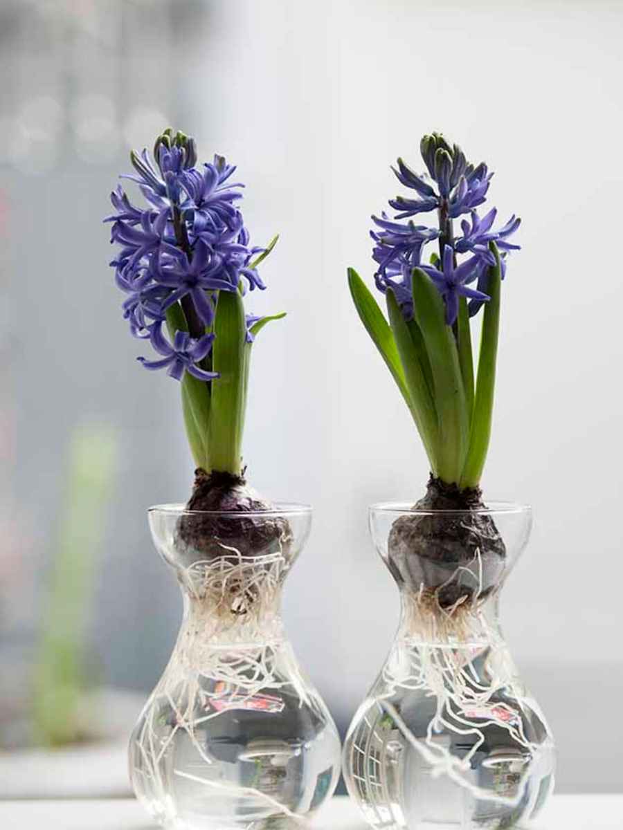 Bring some spring and some fragrance indoors now – Hyacinth vase kits include one prepared hyacinth bulb and a special hourglass-shaped vase. Great for gift giving.