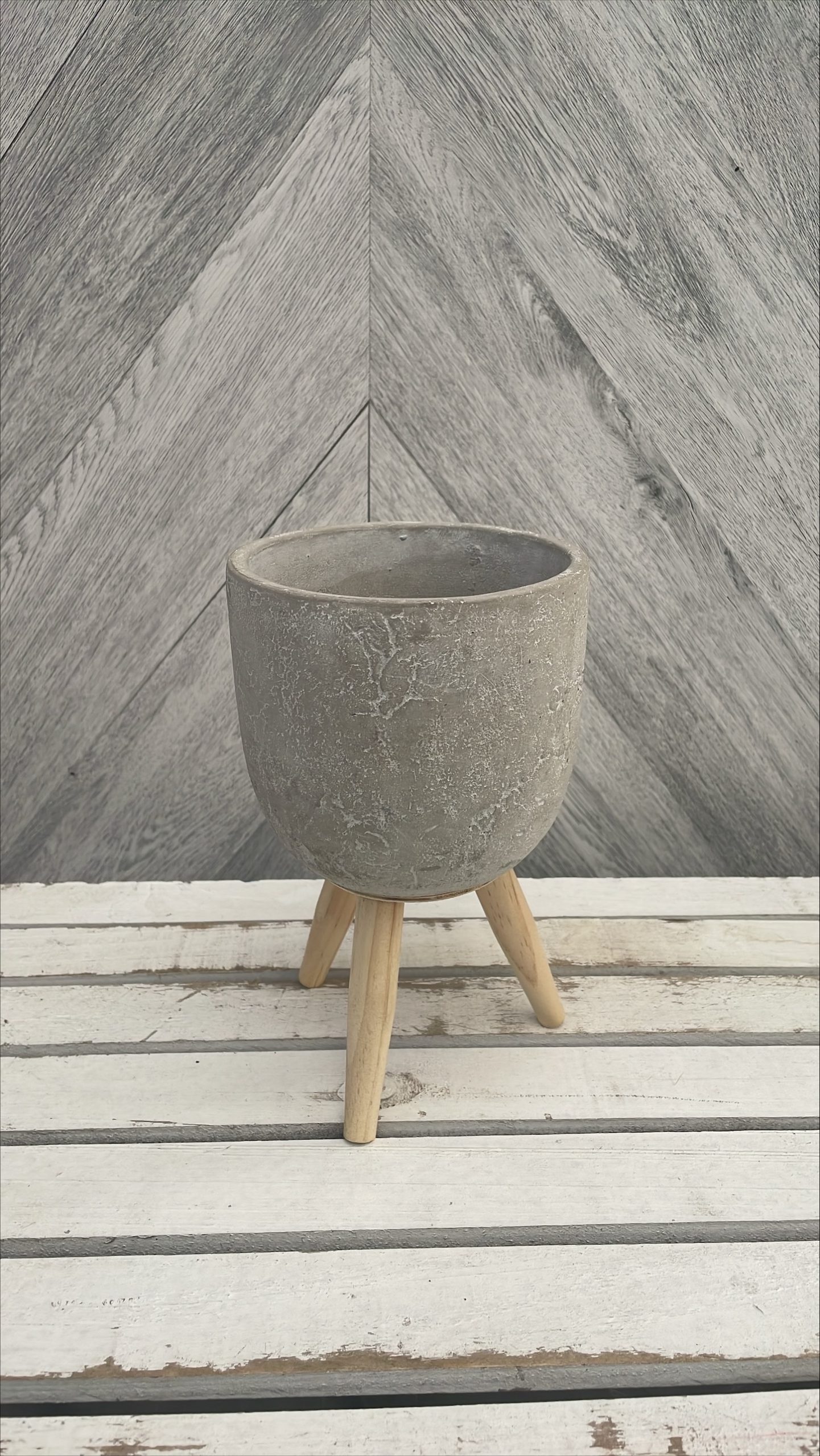No drainage hole. 5.5″ Dia pot; 8.6″ Tall including legs
