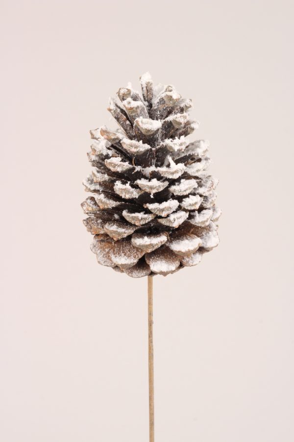 Extra large natural pinecones with a snowy look on wooden stems. These accents will work well as a focal point or in combination with other accents. Sold individually.