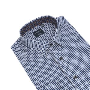 Leo Chevalier 100% Cotton Non-Iron Regular Fit Men`s Printed Sport Shirt Hidden Button Down Collar Long Sleeve with Contrast trim.