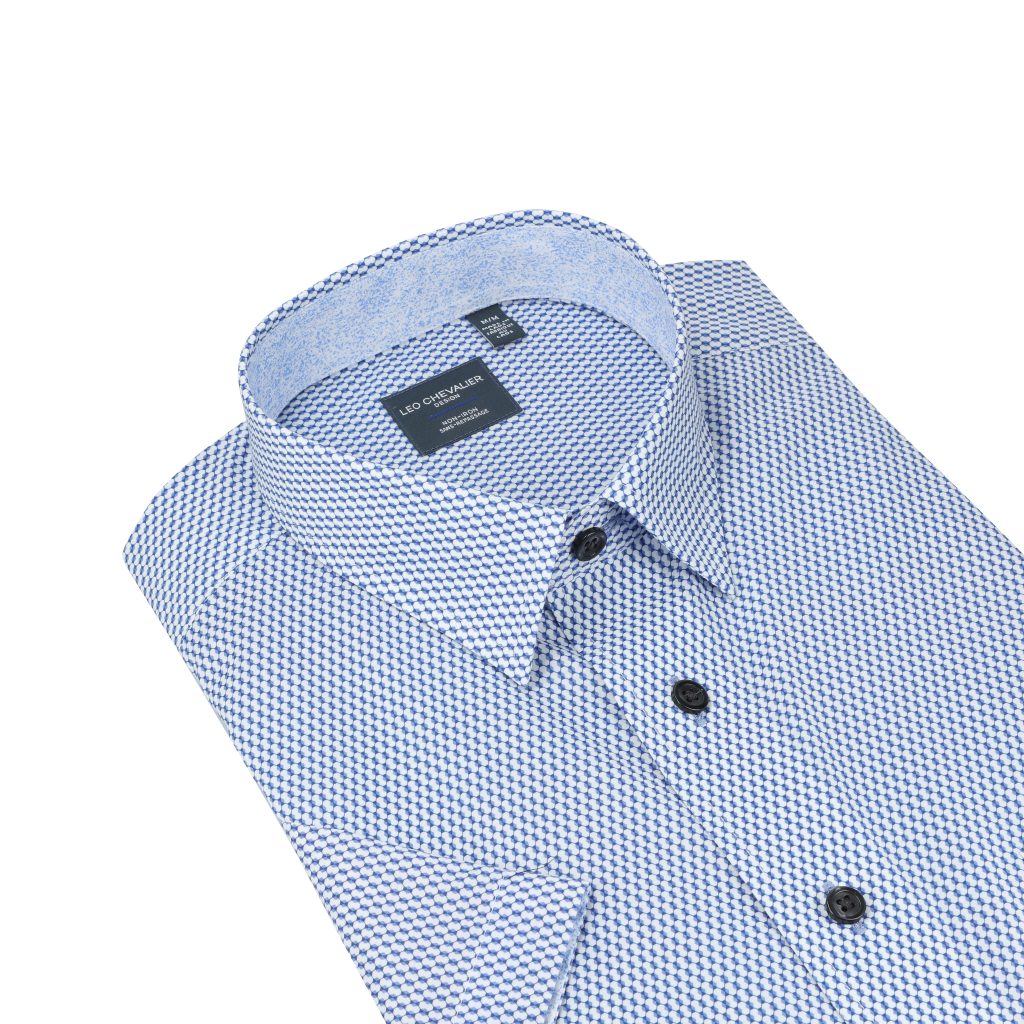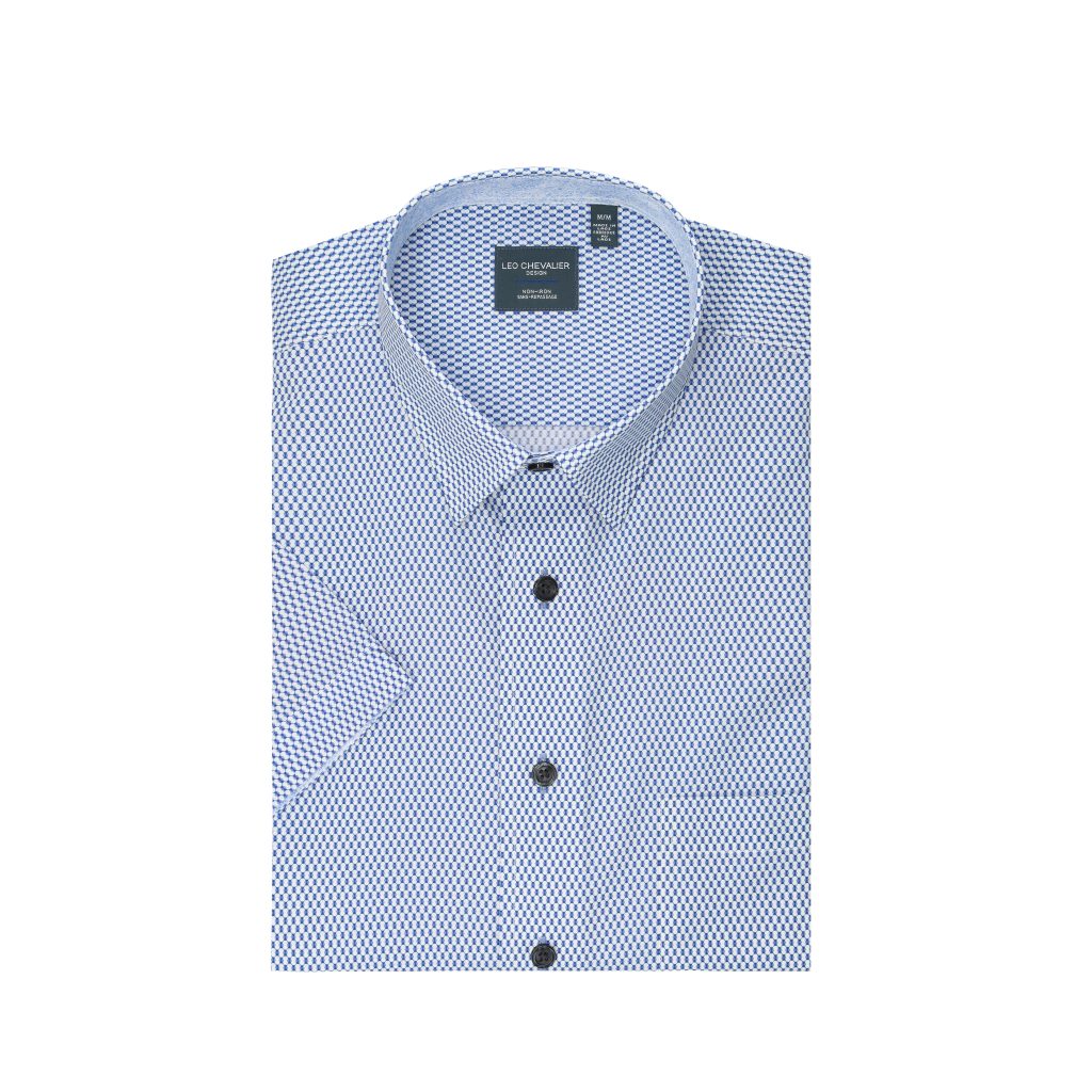 Leo Chevalier Print SS Non Iron Sport Shirt (Blue)