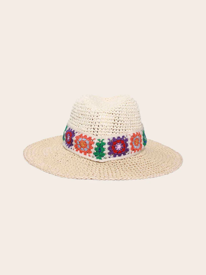 The casual LOEVENICH women’s fedora (37 x 11 cm) made of 100% paper is lightweight, breathable and perfect for sunny days. Hand-crocheted, crushable and therefore ideal for traveling and the beach. The crocheted hat band with colorful boho flowers makes for a summery eye-catcher. The elastic lining band adjusts comfortably to your head size. One Size