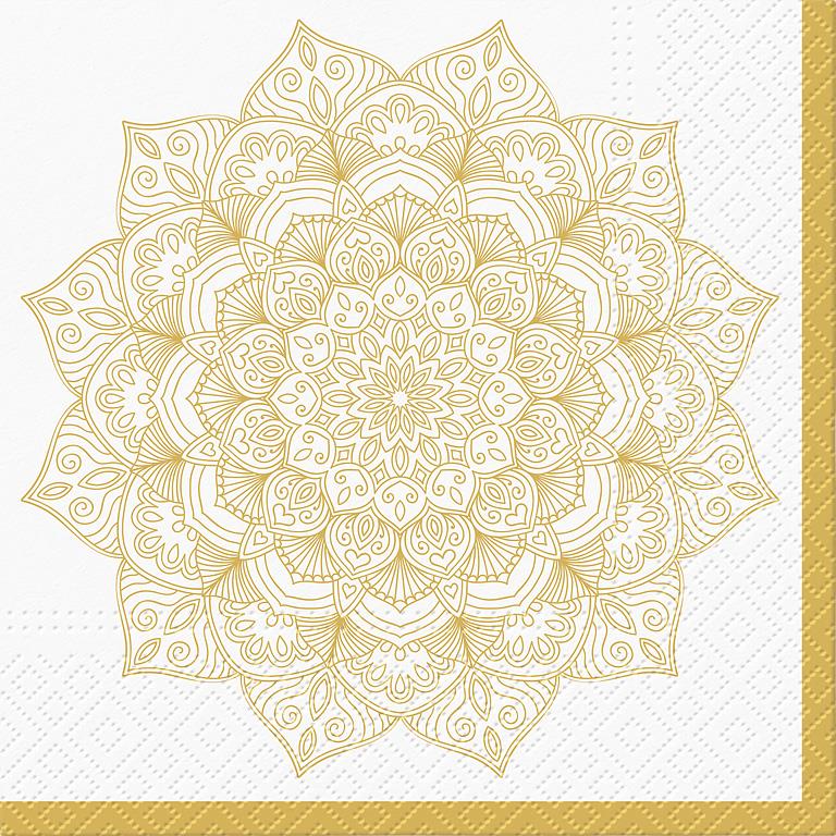Elevate any table setting with this Mandala Golden Napkin. Intricately designed with delicate patterns, it adds a touch of sophistication, harmony, and artistic flair – perfect for special occasions, boho-chic gatherings, or everyday luxury. These high-quality printed paper napkins offer style and convenience for gatherings.
