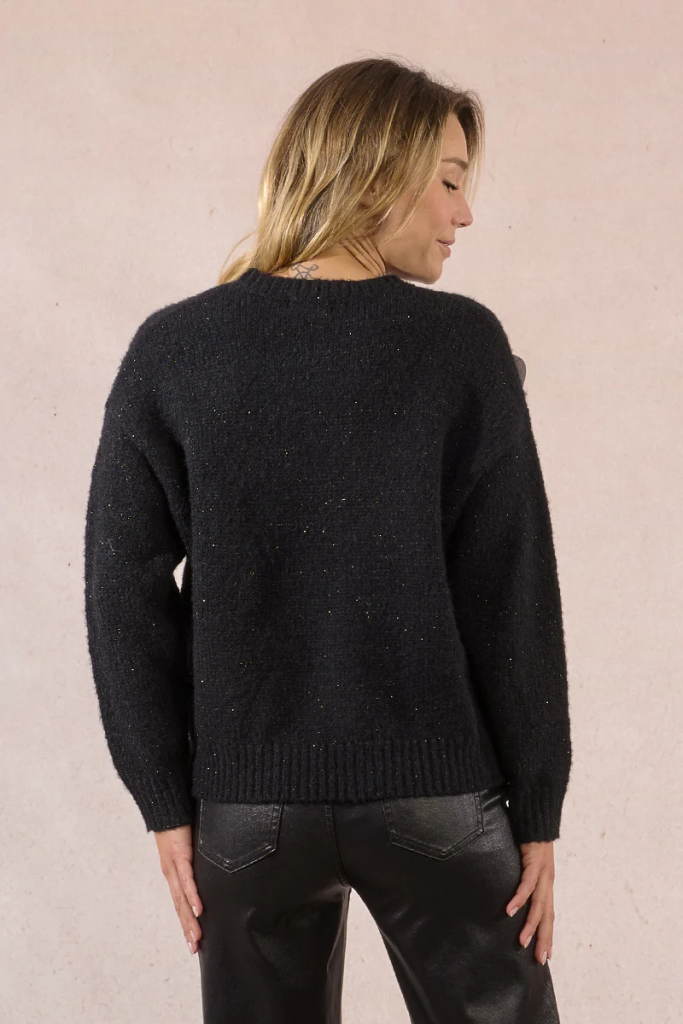 Embrace florals beyond spring with this embossed flower sweater from Molly Bracken, perfect for carrying your favorite summer style into colder months. It showcases two 3D floral accents adorned with delicate rhinestones, adding subtle sparkle.