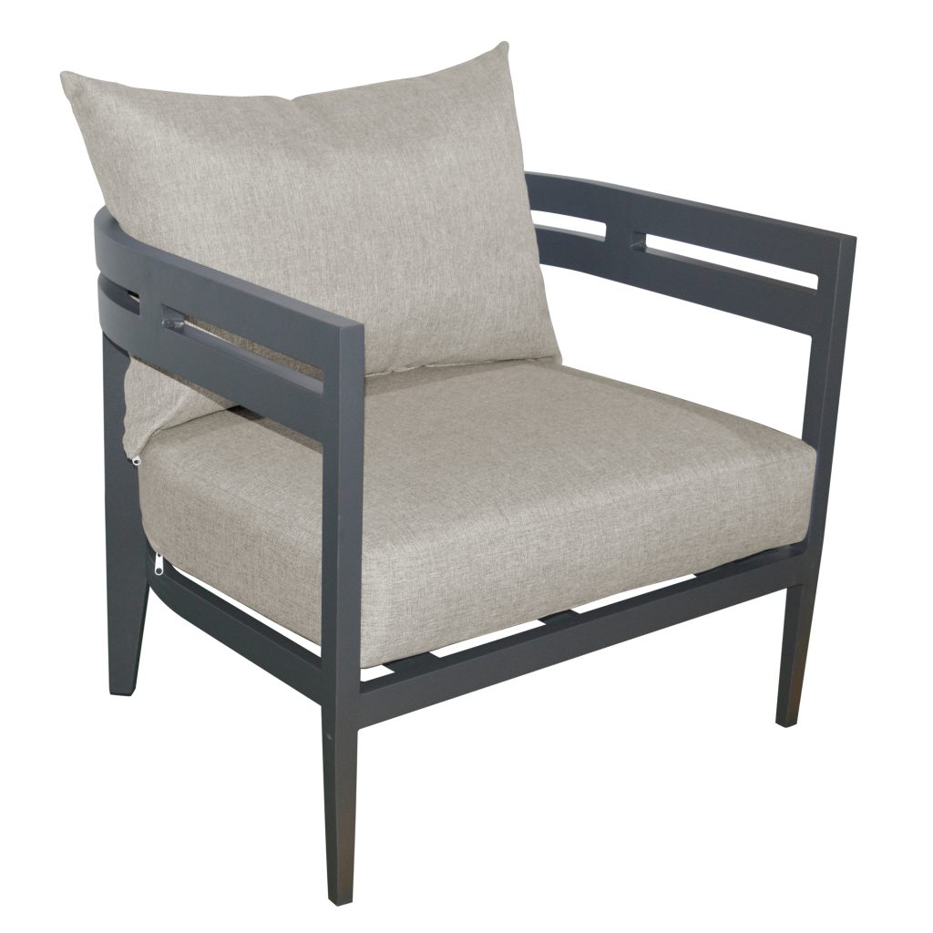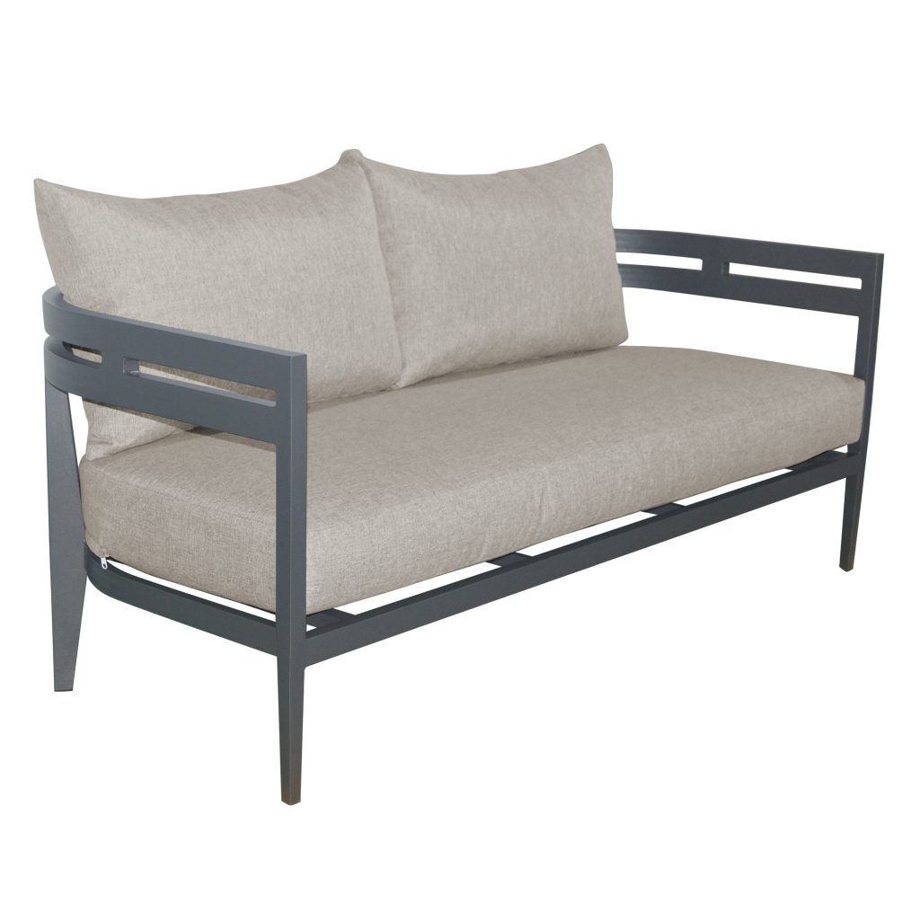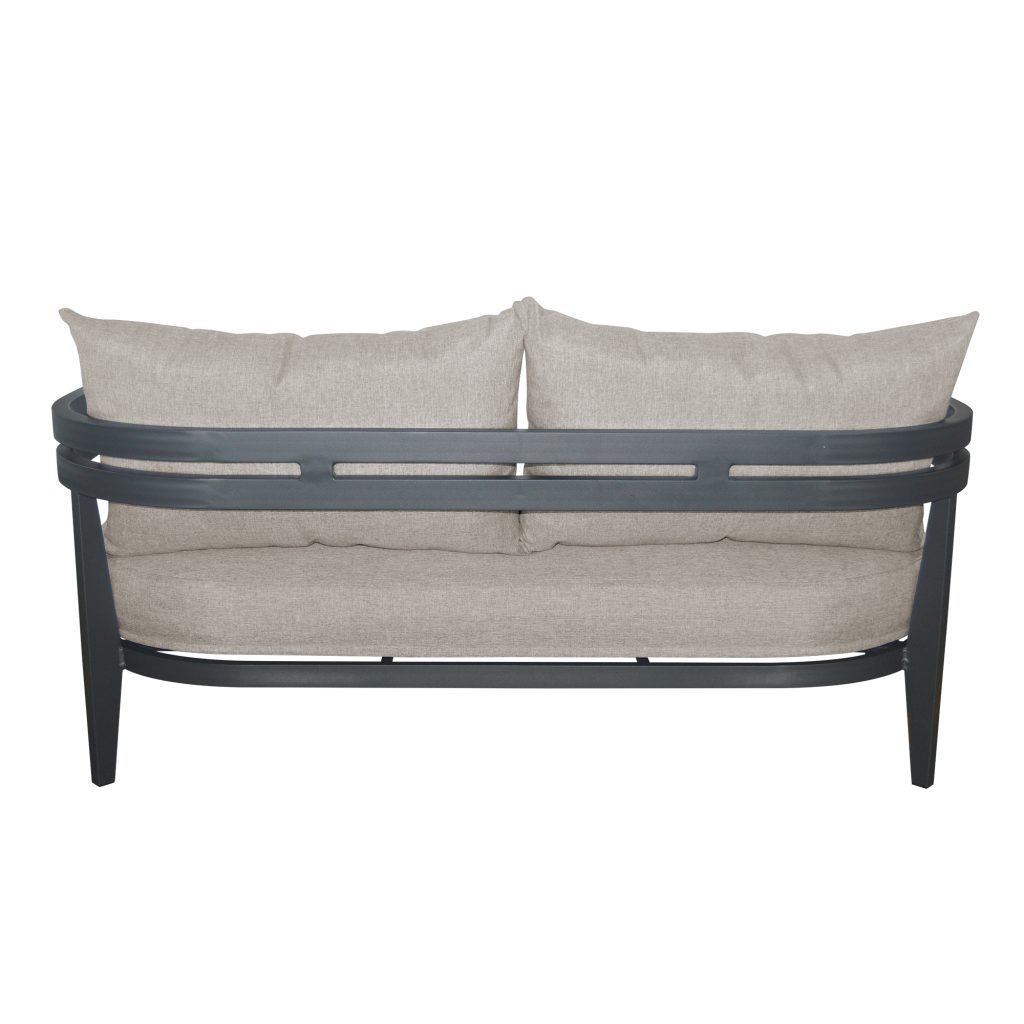Meet the Naples 4pc Sofa Conversation Set a sleek, modern patio lounge set featuring two deep-seated sofas with a charcoal-gray, clean-line frame and plush cushions. The low, minimalist coffee table anchors the layout for easy entertaining, while the contrast pillows add a tailored look. Designed for comfort and durability outdoors, this set creates a high-end, resort-style conversation area that fits beautifully in contemporary spaces.